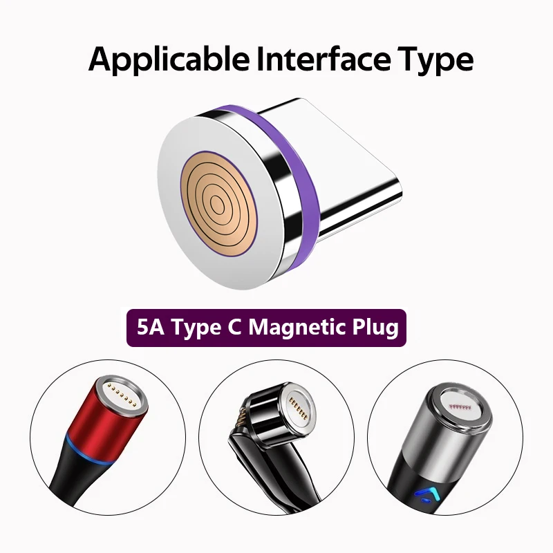 Enchufe magnético de rotación 5A Max 540 para Cable magnético USB Función: transferencia de carga y sincronización Corriente: 5a máx. Velocidad de transferencia: 480 Mbps Tres Interfaces: Tipo C/para iPhone/Micro Productos compatibles: para teléfonos móviles Solo CompatibleCon cable magnético redondo USB A USB C de 7 contactos (NoCompatible con otros contactos, formas y cables magnéticos PD tipo-c a tipo C)