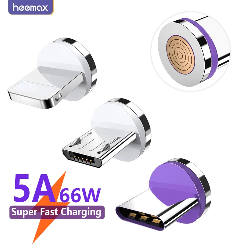 Comprar Cable de enchufe magnético redondo 5A para iPhone, adaptador de carga rápida, Microusb tipo C, 3A