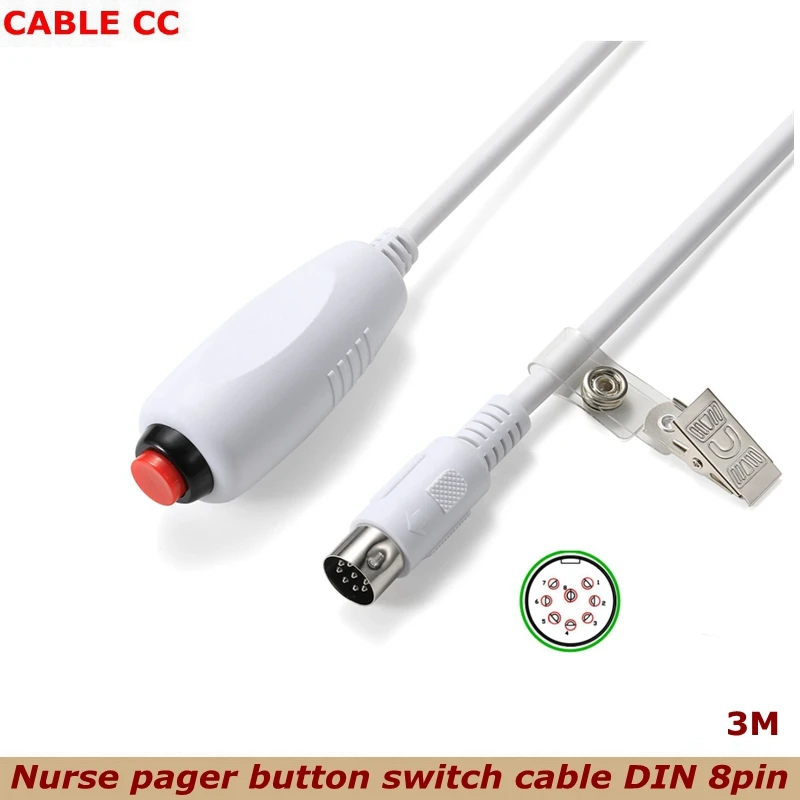 Comprar Cable de enchufe de teléfono de línea de interruptor de botón de interfaz de llamada de emergencia de enfermera DIN de 8 pines de 3m con Clip de sábana llamada de repuesto Universal