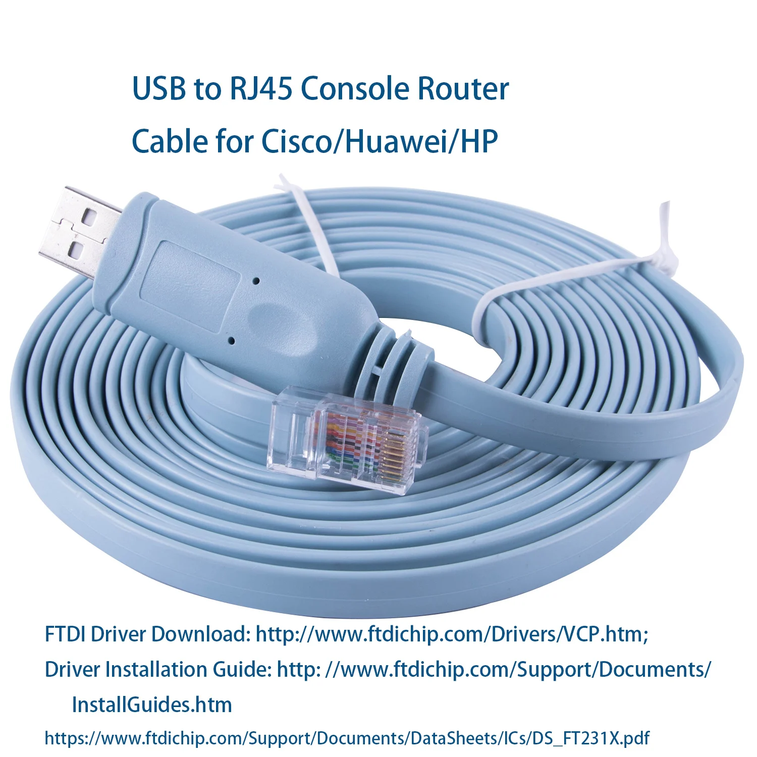 Comprar Cable de enrutador de consola USB a RJ45 RS232, adaptador de interfaz de serie FTDI azul, compatible con Win10