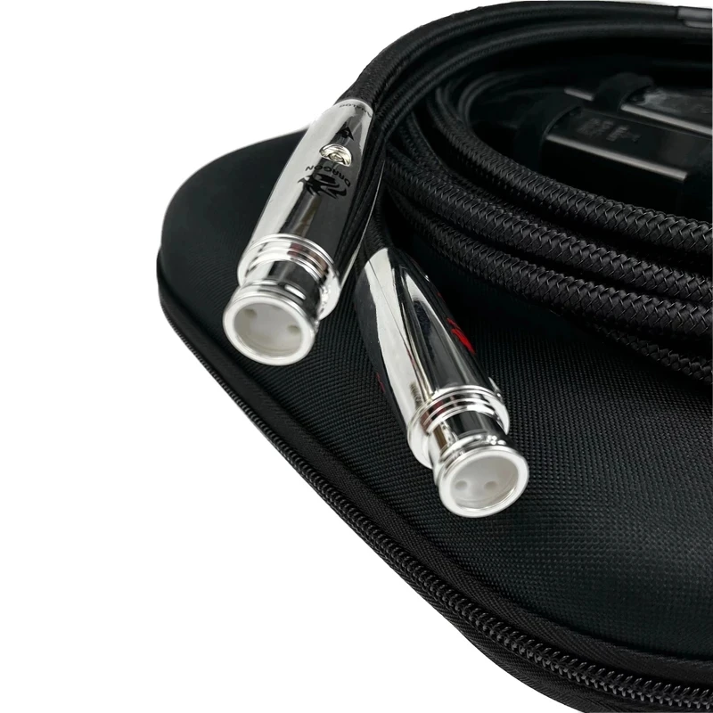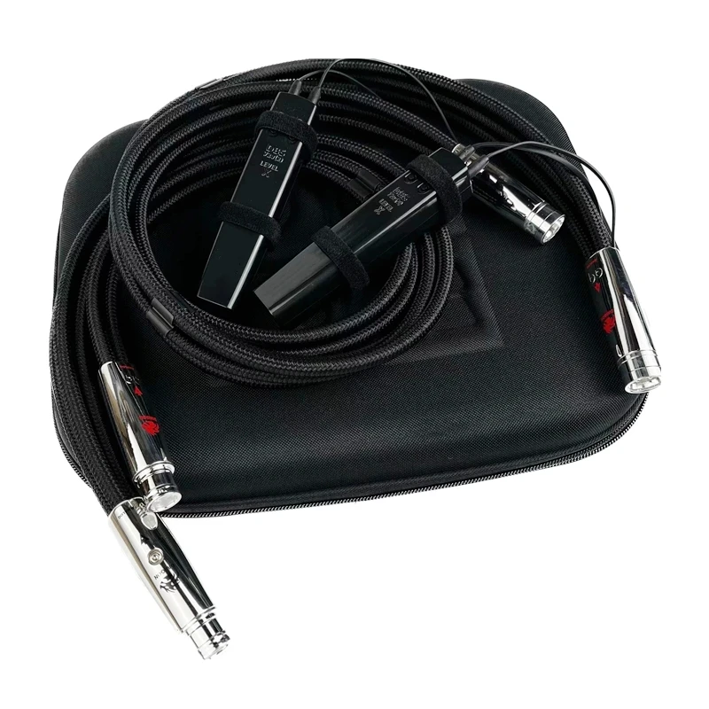 Características Tecnología ZERO (sin impedancia característica) para disipación de ruido lineal y de ancho de banda amplio La única forma de evitar los efectos de desajuste de impedancia característica entre un cable y su fuente conectada y circuitos de carga es evitar que el cable tenga una impedancia característica. ZERO-Tech tiene éxito eliminando el campo electrostático entre los conductores de señal alta y baja del cable, permitiendo la disipación de ruido lineal (de octava a octava consistente) de radiofrecuencia (RF). y transitorios sin comprimir. Con el fin de preservar el aislamiento completo de ZERO-Tech entre los conductores de señal, se incluye un paquete DBS para cables XLR. Conductores de plata pura de superficie perfecta sólida (PSS) Los conductores sólidos evitan la interacción eléctrica y magnética. PSS Solid-Silver minimiza la distorsión causada por los límites de grano y maximiza la disipación de ruido de RF lineal. Dieléctrico de tubo de aire FEP Los conductores positivos se benefician de casi ningún contacto entre el metal y su aislamiento FEP, que es notable por su constante dieléctrica superior y mínima interferencia de señal. Los conductores negativos se benefician del "aislamiento con pérdidas" intencionalmente: sin aire ni FEP ayudan a maximizar el trabajo diferente de la conexión negativa. Sistema de polarización dieléctrica 72v El aislamiento también es un dieléctrico que puede actuar como un filtro de derivación. La polarización minimiza el ruido dieléctrico y linealiza el filtro, mejorando significativamente la disipación de ancho de banda del ruido de RF inducido. Nivel 7 de disipación de ruido: Drenajes PSS + ZERO-Tech + 72v DBS + Red de malla de carbono/grafeno + Control de dirección Colgando-Plata sobre rojo-Tapones de cobre Los enchufes más finos cuentan con una plata colgante superior (no caída) directamente sobre cobre rojo de pureza extrema. Barriles de drenaje de RF plateados Los barriles chapados en plata con conexión a tierra maximizan la disipación de ruido al evitar que un barril de metal acople capacitivamente La RF a los conductores.