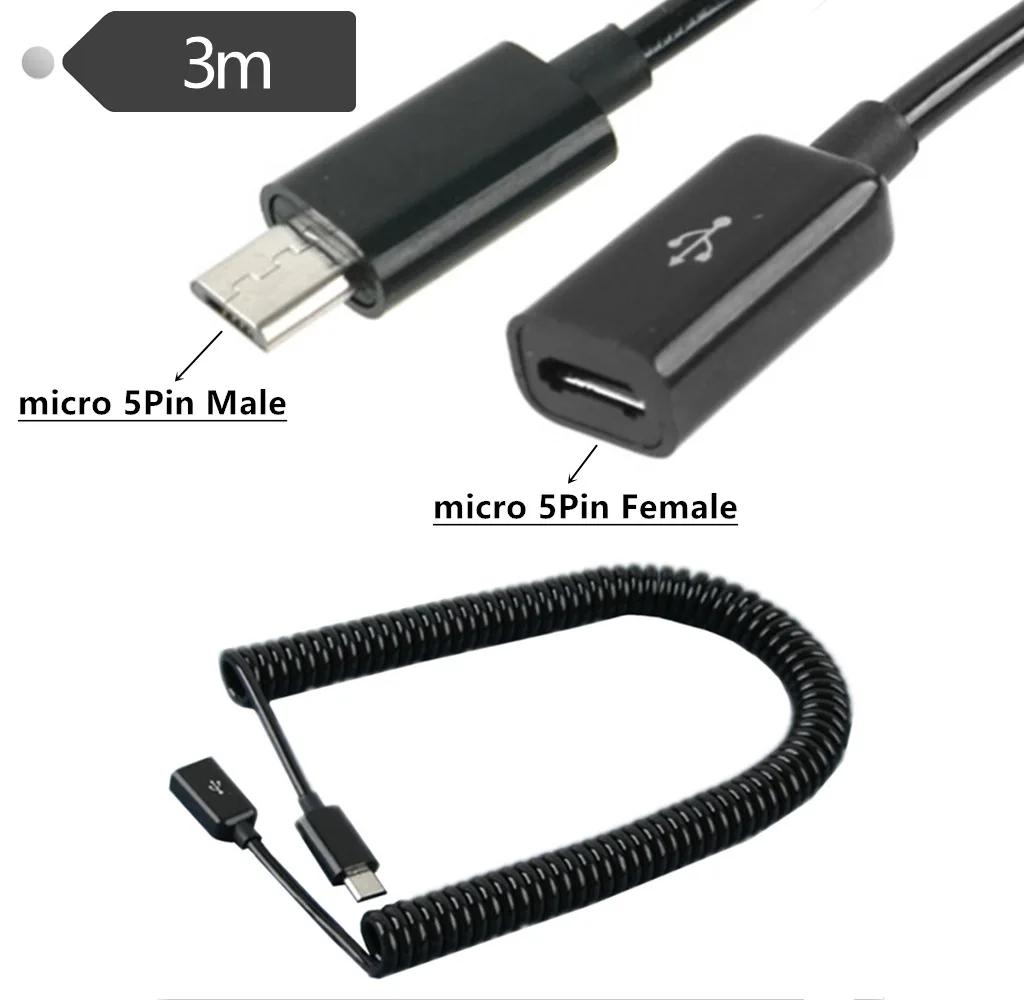 Cable de resorte Cable adaptador de carga de datos USB 2.0 HTC Samsung Motocicleta Nokia Mobile Micro 5P bus macho a hembra 3 metros;