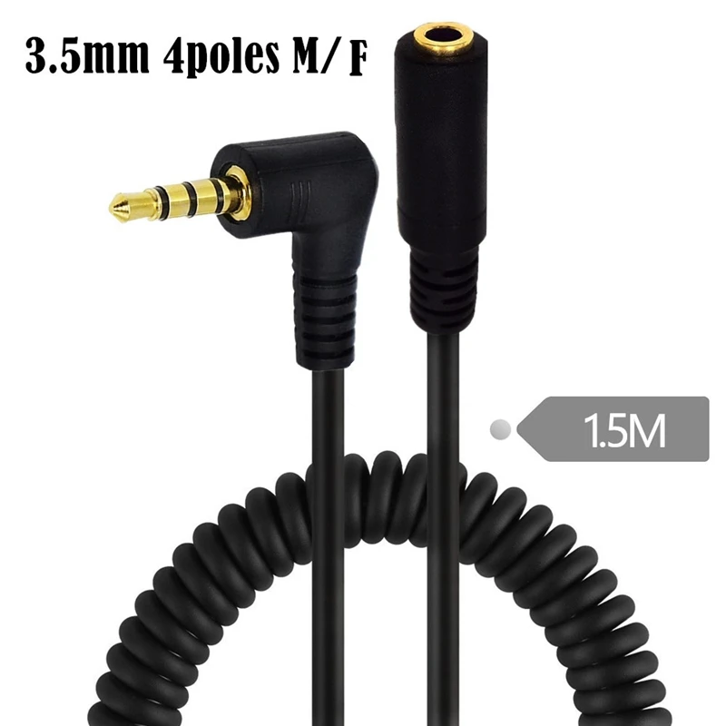 Comprar Cable espiral en espiral con resorte AUX, Audio estéreo, 90 grados, 3,5mm, 3/4 Pole, TRS a TRRS, 3,5mm, 3/4 Pole, macho/hembra