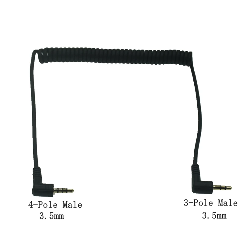 90 grados 3,5mm 3/4 polos macho a 3,5mm/2,5mm 3/4 polos macho/hembra auriculares estéreo Audio AUX Mini resorte en espiral Cable