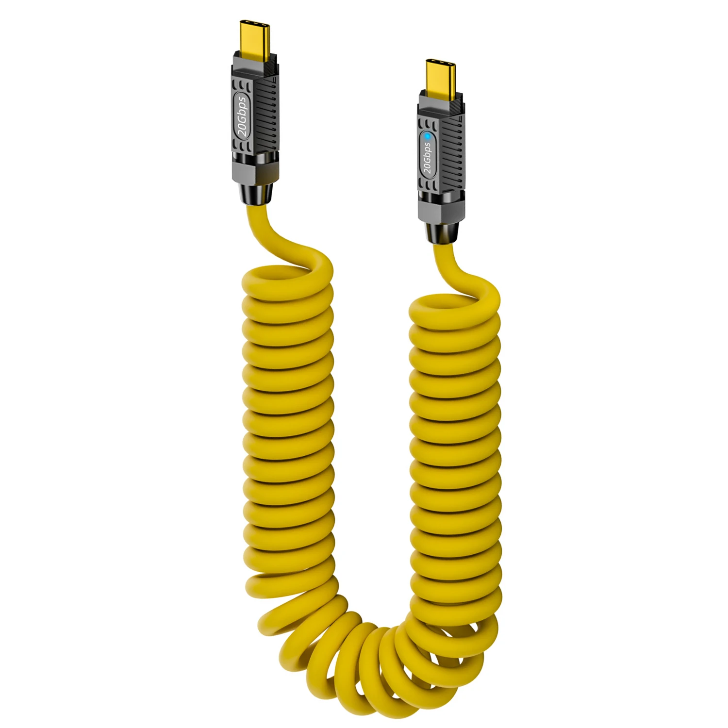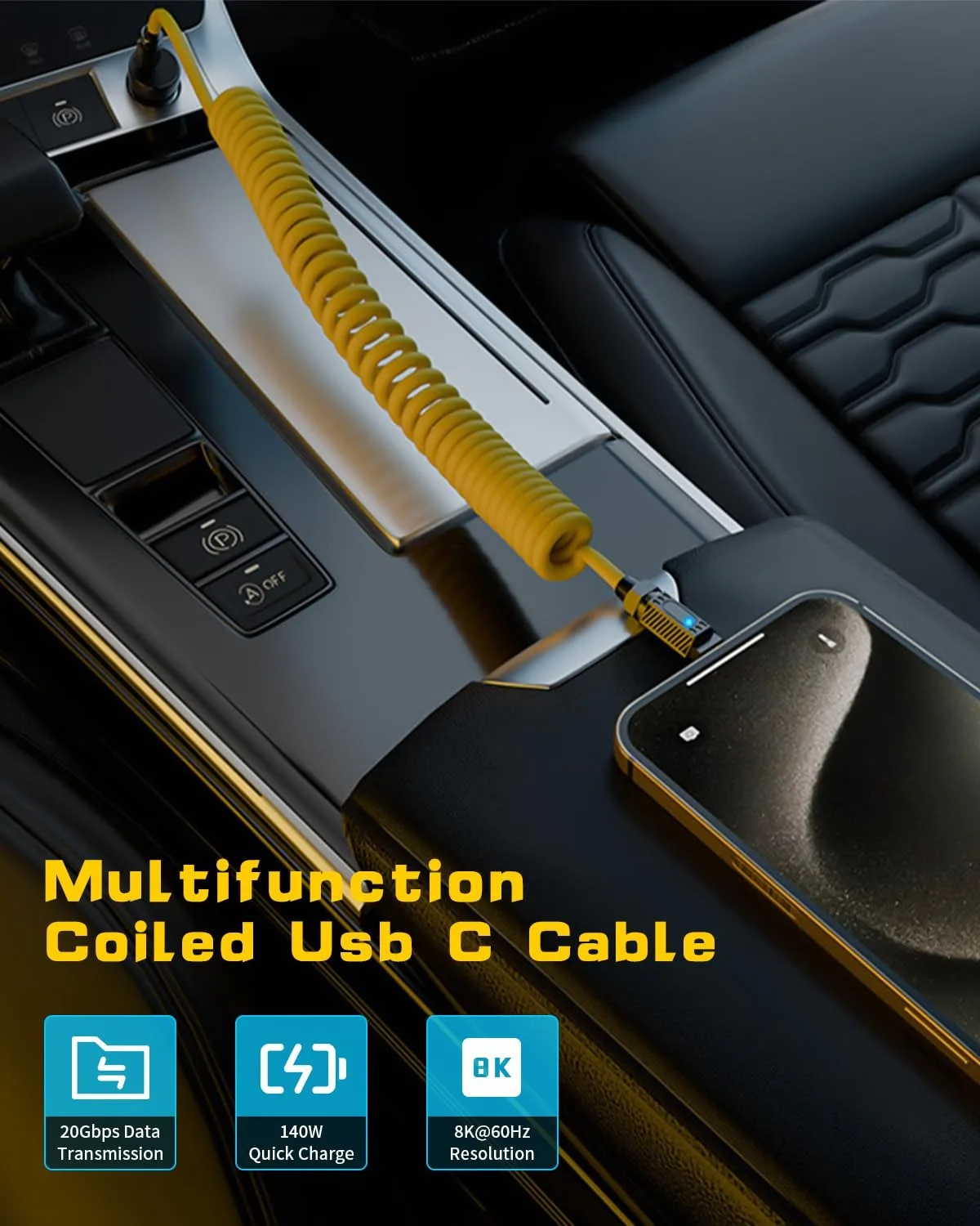 Comprar Cable en espiral de resorte tipo C a C, Cable de carga rápida para teléfono móvil de coche, compatible con transferencia de datos de 20Gbps, pantalla de 8K @ 60Hz, USB C, 140W