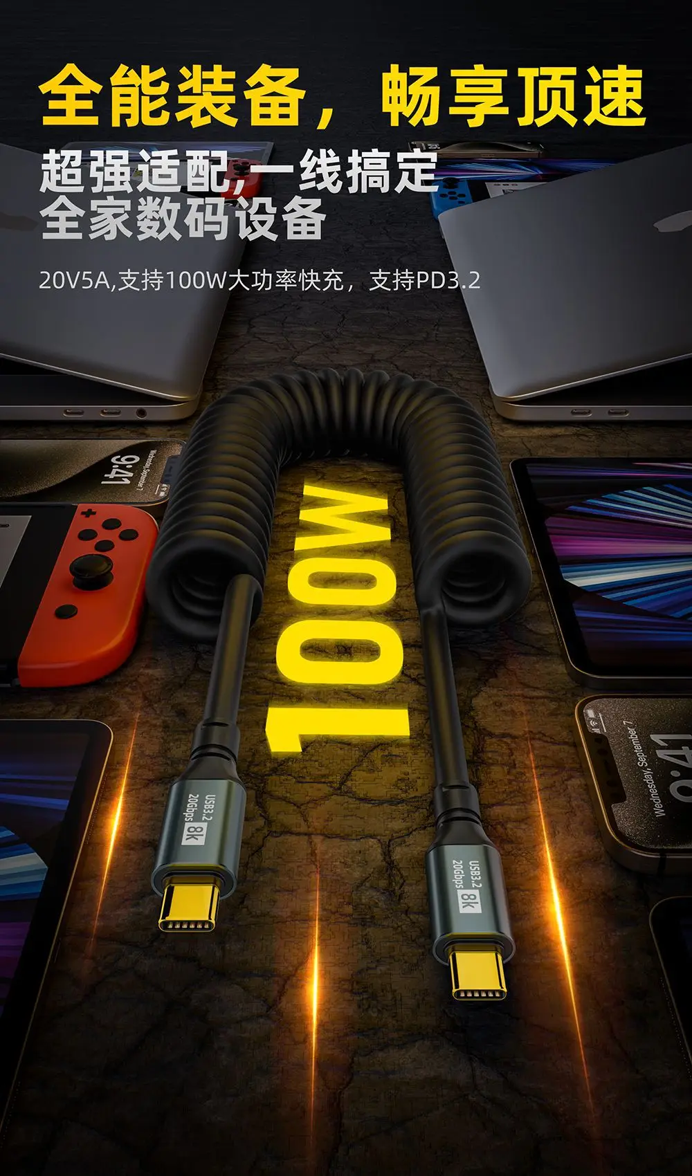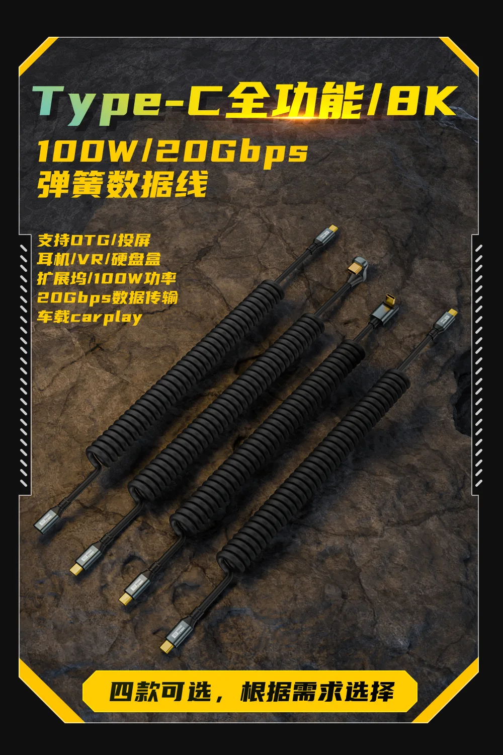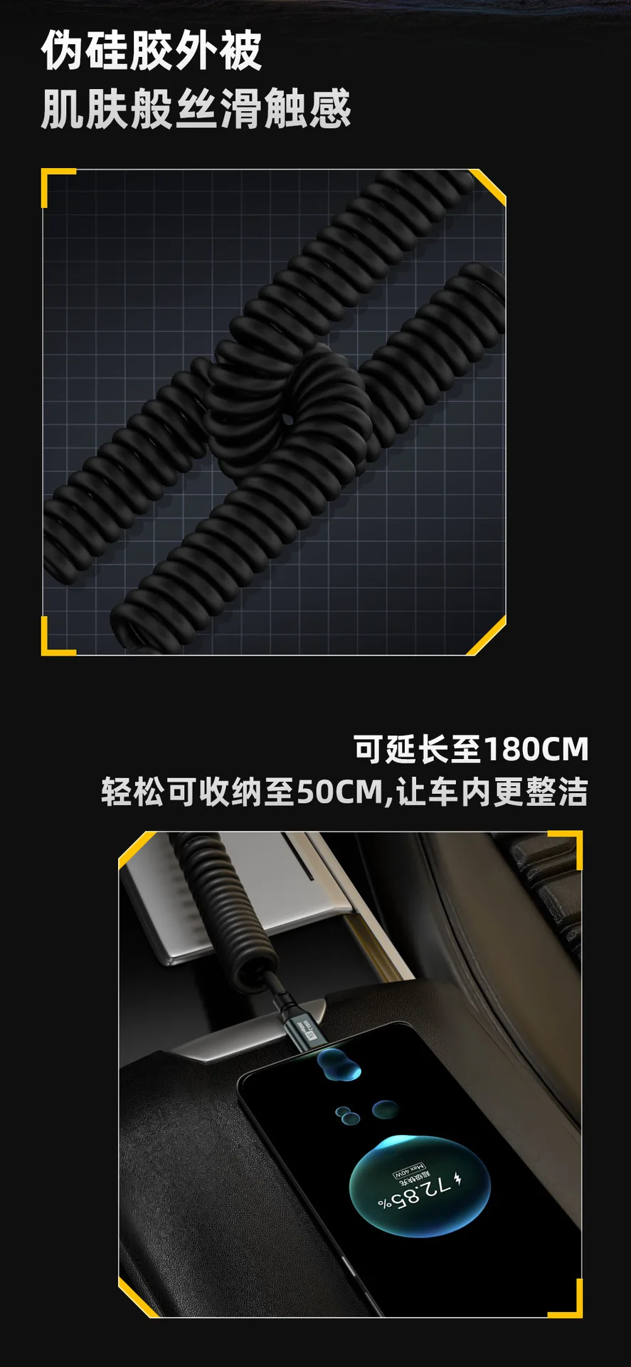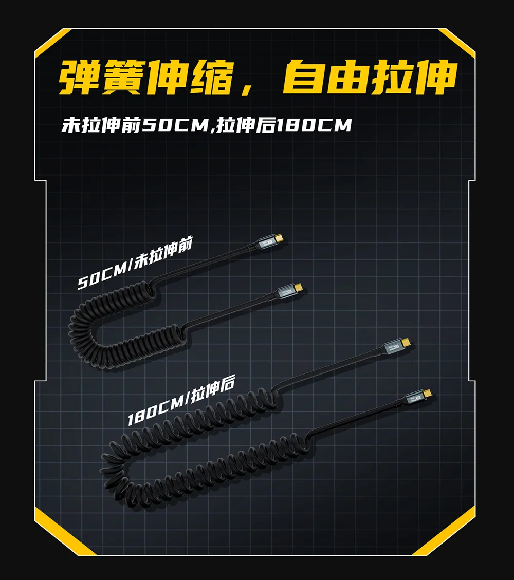 【Cable USB C a USB C en espiral】El cable USB C en espiral con resorte con diseño de resorte flexible y duradero, es fácil de estirar y extender desde 1.5 pies a 6 pies cuando sea necesario y se retrae suavemente a su original 1.6 pies de longitud, evitando el desorden y enredos de cables.Longitud del cable: 1,8 m.