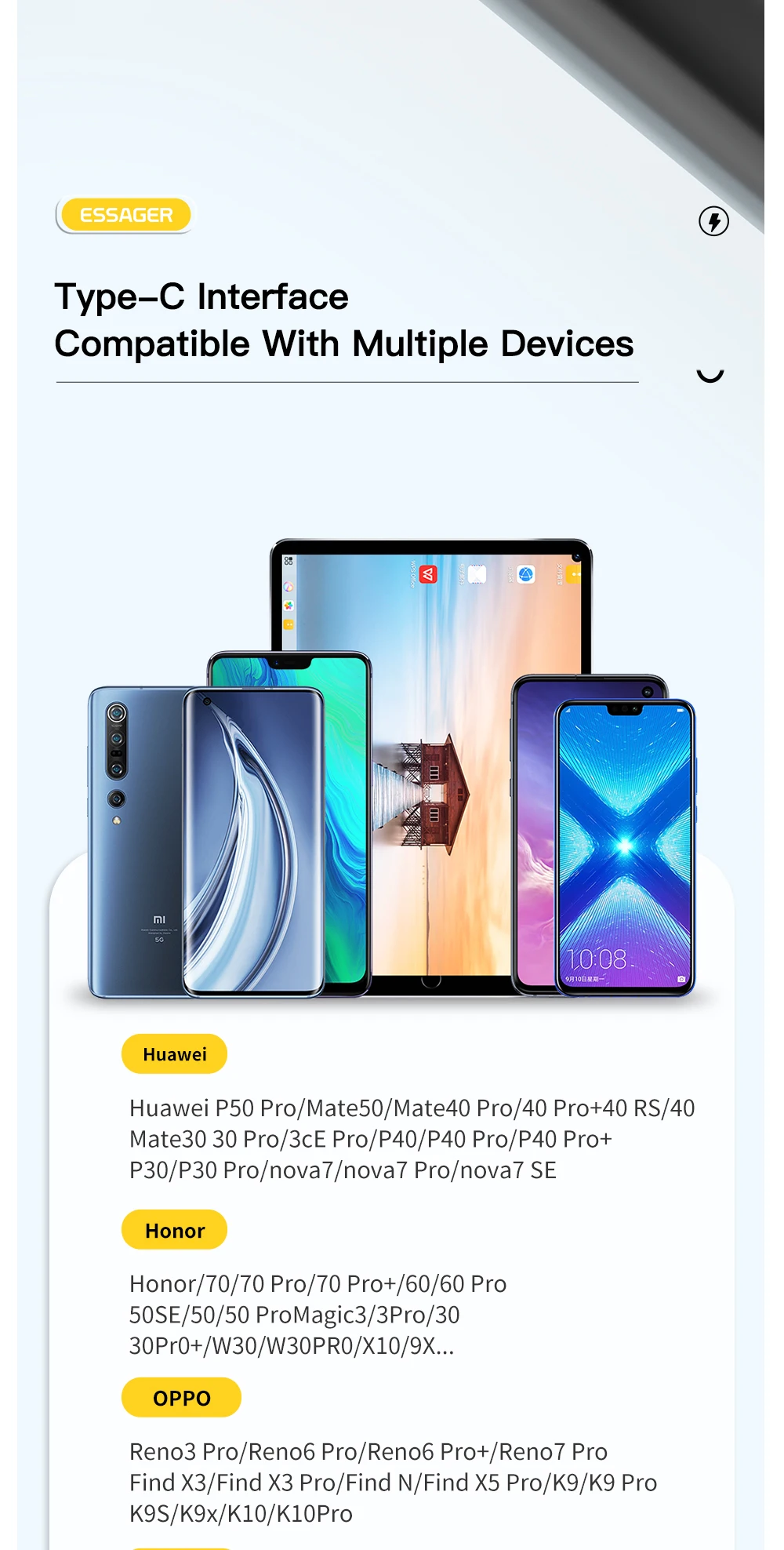 5. Hemos enumerado algunos modelos de teléfonos móviles de carga rápida para usted y si tiene alguna pregunta, comuníquese con el servicio de atención al cliente de la tienda oficial de Essager.