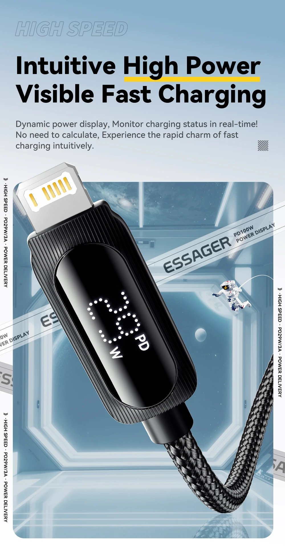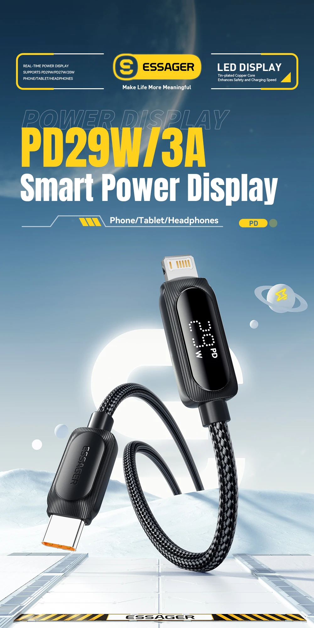 Comprar Cable Essager USB C para iPhone 14 13 12 11 Pro Max Xs Cable de pantalla Digital PD 29W carga rápida tipo C para Cable de datos de iluminación