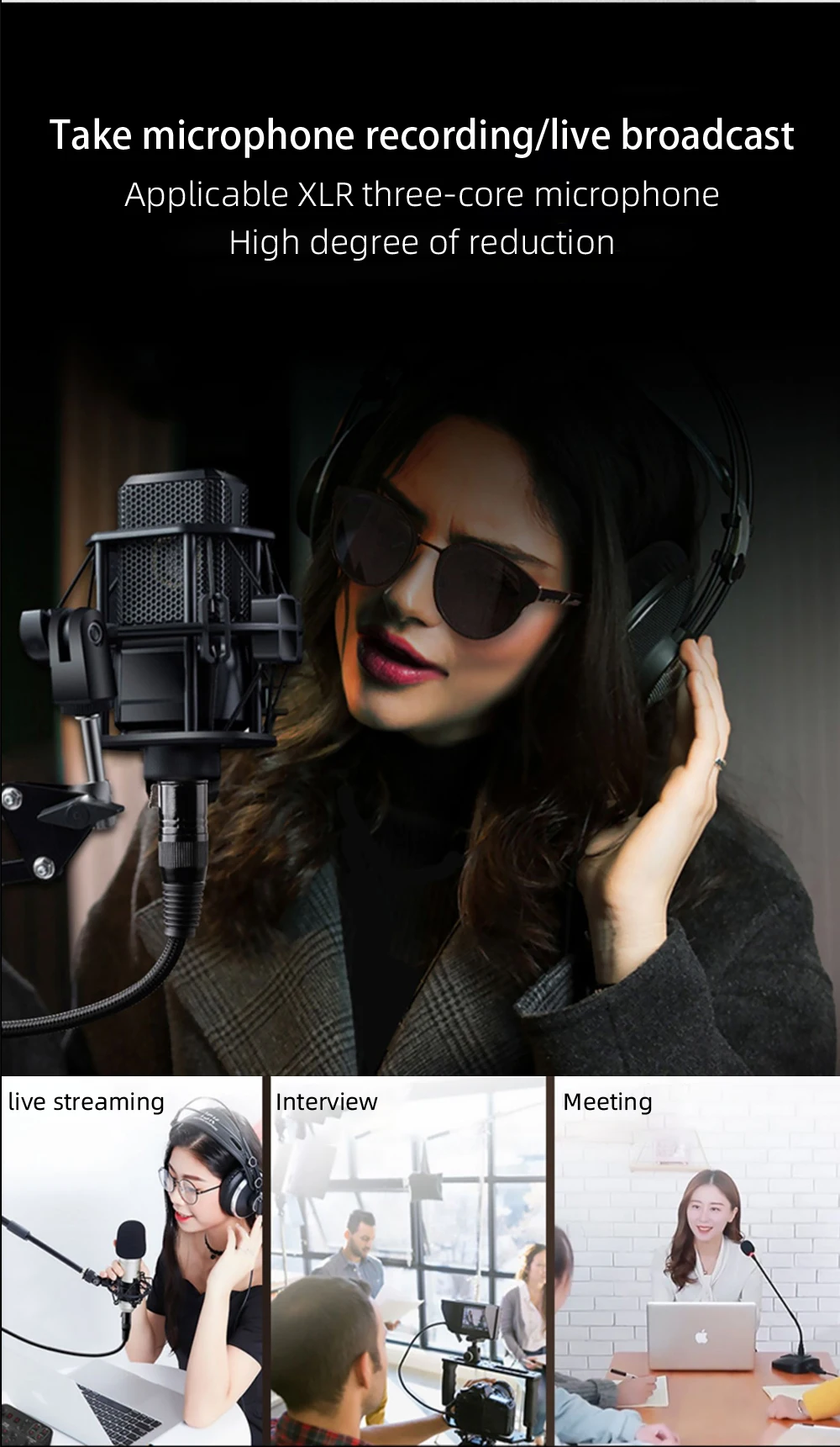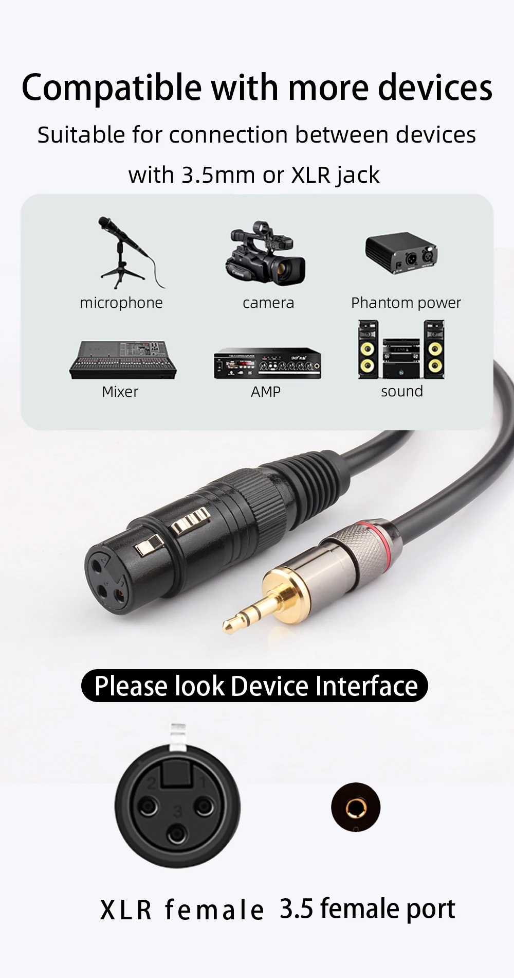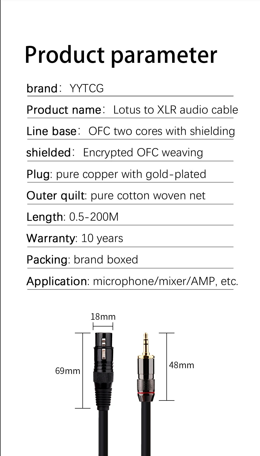 1. Utiliza XLR y conector de 3,5mm de YYTCG, que está hecho de enchufe Chapado en cobre, carcasa de metal, y las ventajas de la carcasa de metal se pueden proteger de interferencias externas. El conector chapado en oro de diseño Eddy hace que sea más estable para conectarse al dispositivo para asegurar una transmisión de alta calidad.