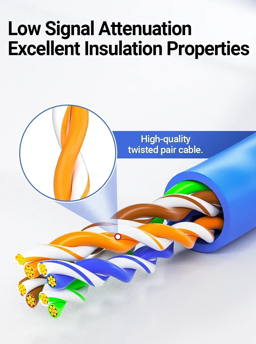 3.Compatible con versiones anteriores de equipos CAT5e; Proporciona conectividad universal para servidores de computadora, módems, enrutadores wifi, cajas de distribución, NAS, PC, televisores inteligentes 4K, impresoras, cámaras IP, Roku, PS3, PS4, PS4 Pro, Xbox One, Xbox 360 y otros sistemas de juegos.