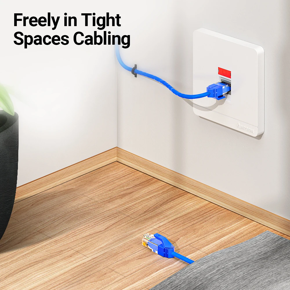 Cable Ethernet ultrafino/Velocidad de transmisión de 1 Gbps/Pin chapados en oro/Gama exterior ignífuga/Mejor apariencia del modelo AMPCOM/Prueba en laboratorio autorizada