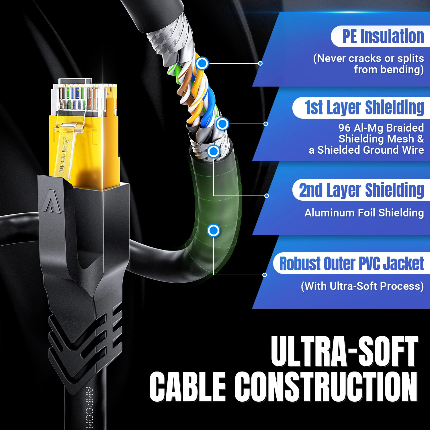 Comprar Cable Ethernet AMPCOM, Cable de red ultrasuave de alta velocidad RJ45 Cat6A/7/8 para enrutador, módem, PC, Cable de conexión de Internet de primera calidad