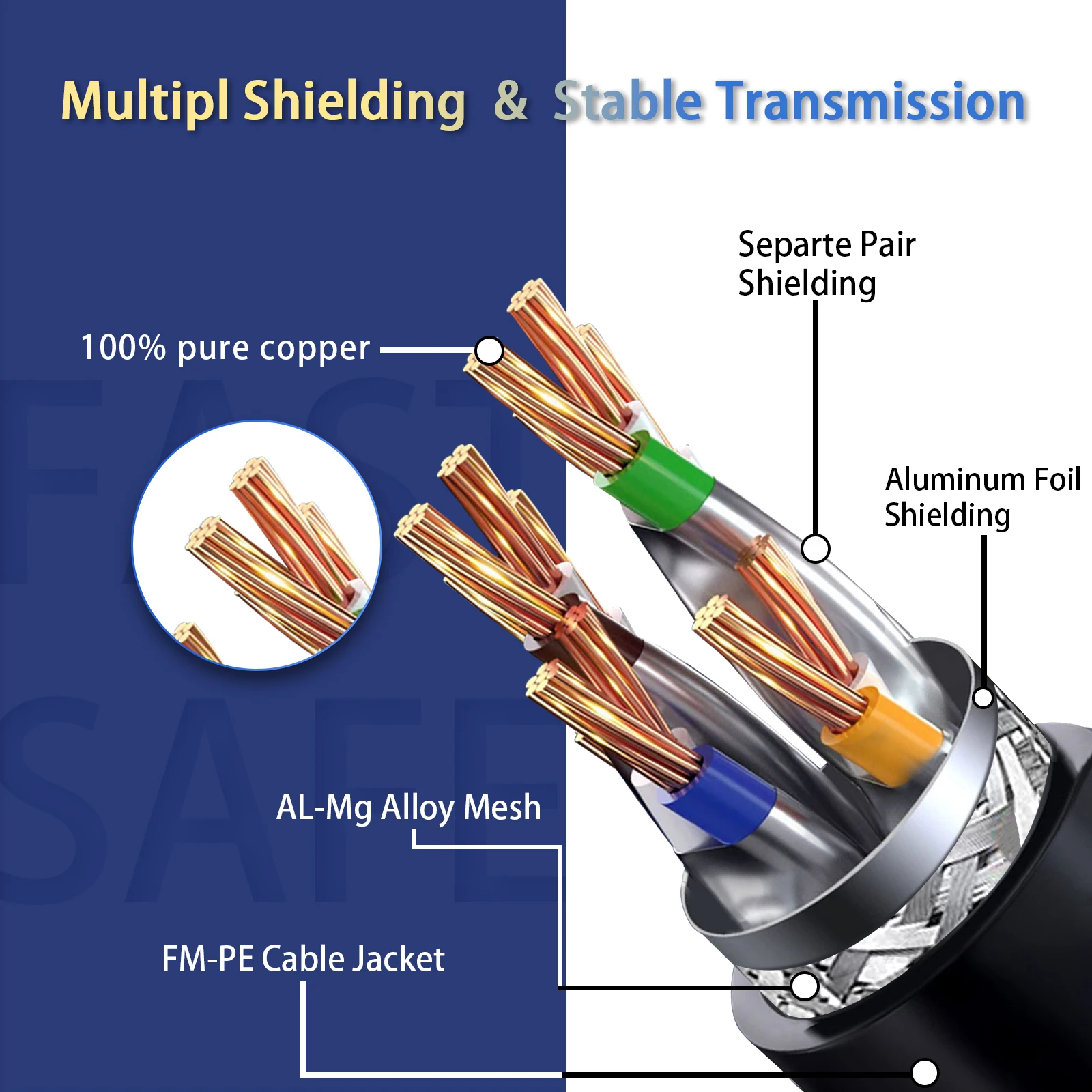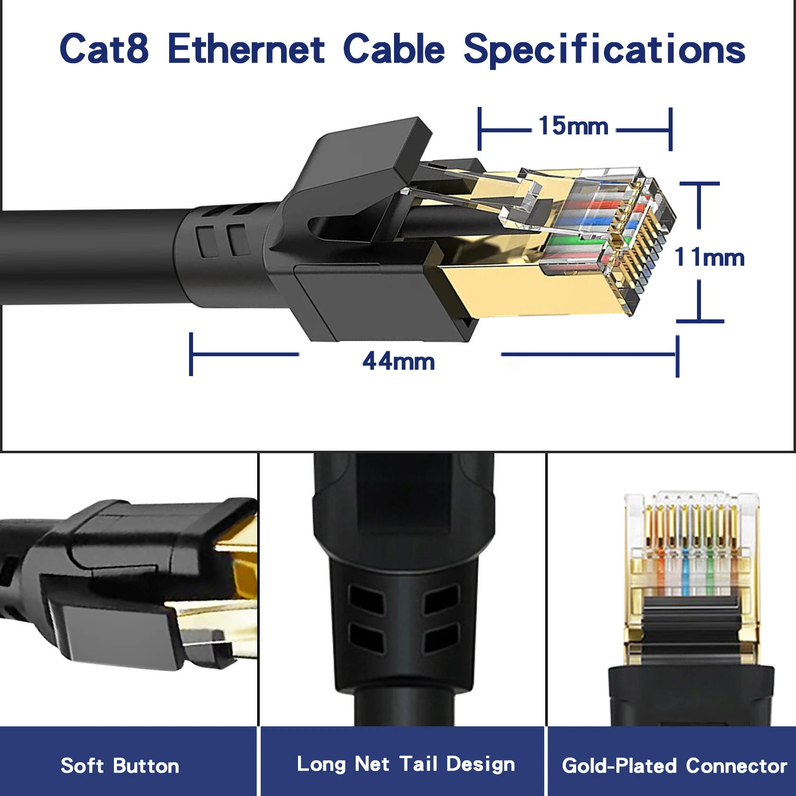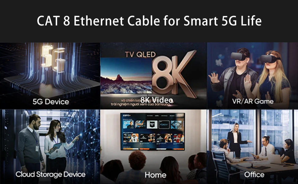 La calidad es el estándar más importante. El cable Ethernet Cat8 más nuevo está hecho de 4 pares trenzados blindados (SFTP) y cables OFC de una sola hebra. También con el blindaje adicional de Cat8 y la calidad mejorada en la torsión de los pares, Cat8 puede reducir cualquier interferencia de señal en toda su extensión. Le permite transmitir videos HD, música, navegar por la red, jugar juegos en línea a alta velocidad.