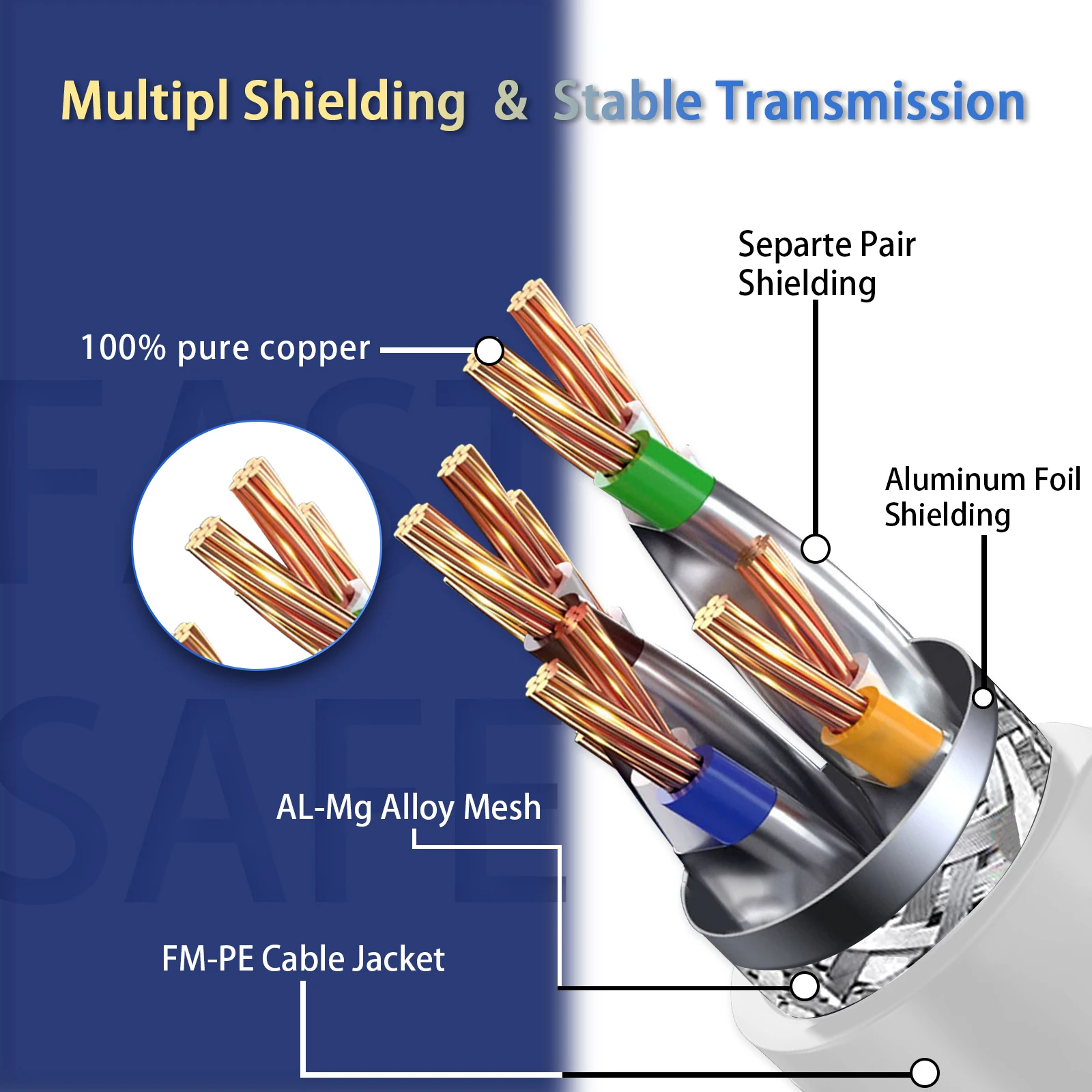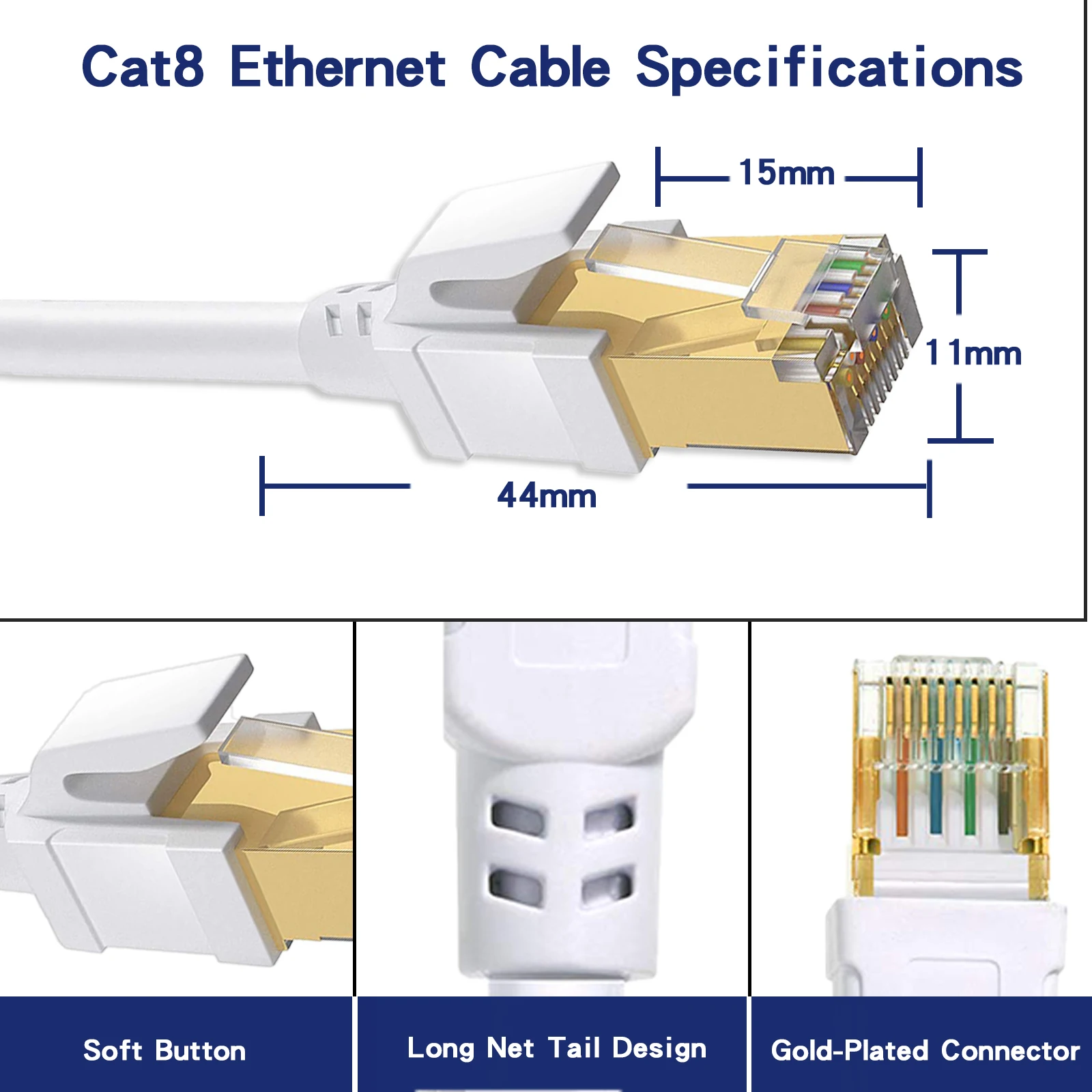 La calidad es el estándar más importante. El cable Ethernet Cat8 más nuevo está hecho de 4 pares trenzados blindados (SFTP) y cables OFC de una sola hebra. También con el blindaje adicional de Cat8 y la calidad mejorada en la torsión de los pares, Cat8 puede reducir cualquier interferencia de señal en toda su extensión. Le permite transmitir videos HD, música, navegar por la red, jugar juegos en línea a alta velocidad.