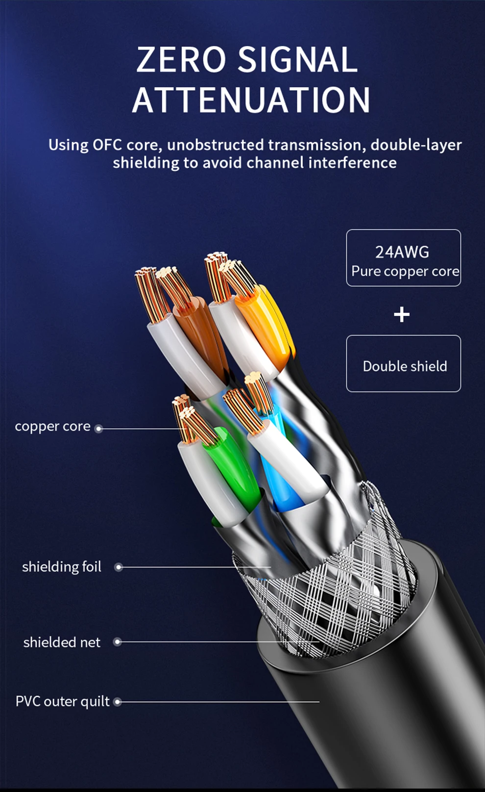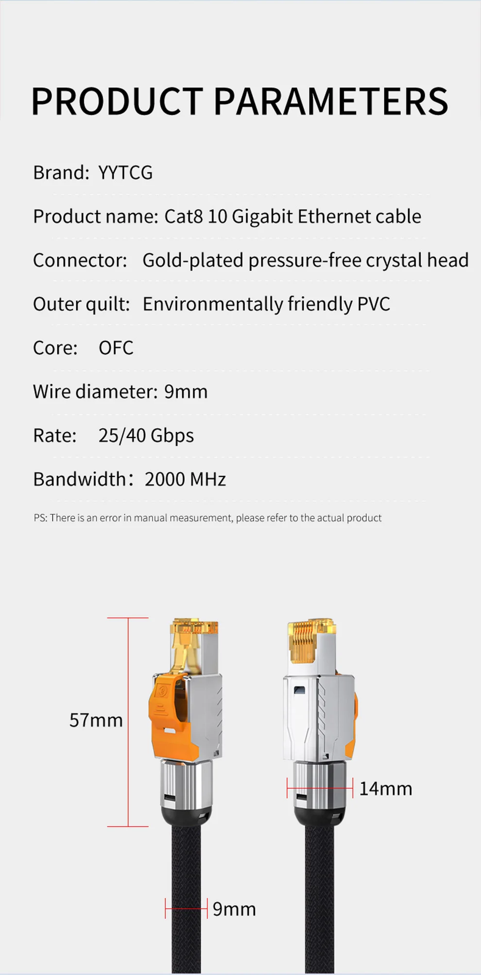 YYTCG Cat8 Cable Ethernet 40Gbps Alta velocidad SSTP UTP Cable de red Ethernet para Tv Laptop Laptops PS Ps4 Router RJ45 Cable(1) VELOCIDAD DE 40Gbps DE TRANSMISIÓN DE LUZ CAT8 Grado de juego(2) Atenuación de señal cero con núcleo OFC, transmisión sin obstáculos, blindaje de doble capa para evitar la interferencia del canal(3) FLEXIBLE Y RESISTENTE AL DESGASTE UTILIZADO DURANTE LARGO TIEMPO Edredón exterior de una pieza de PVC, chaqueta de nailon de 9mm de diámetro de alambre grueso, sin roturas ni roturas