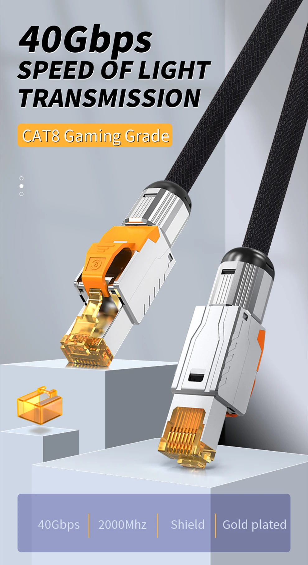 Comprar Cable Ethernet Cat 8 de alta velocidad, conector de red Cat 8 SSTP RJ45 para enrutador de ordenador portátil, Cable de red RJ45 de 2000MHz