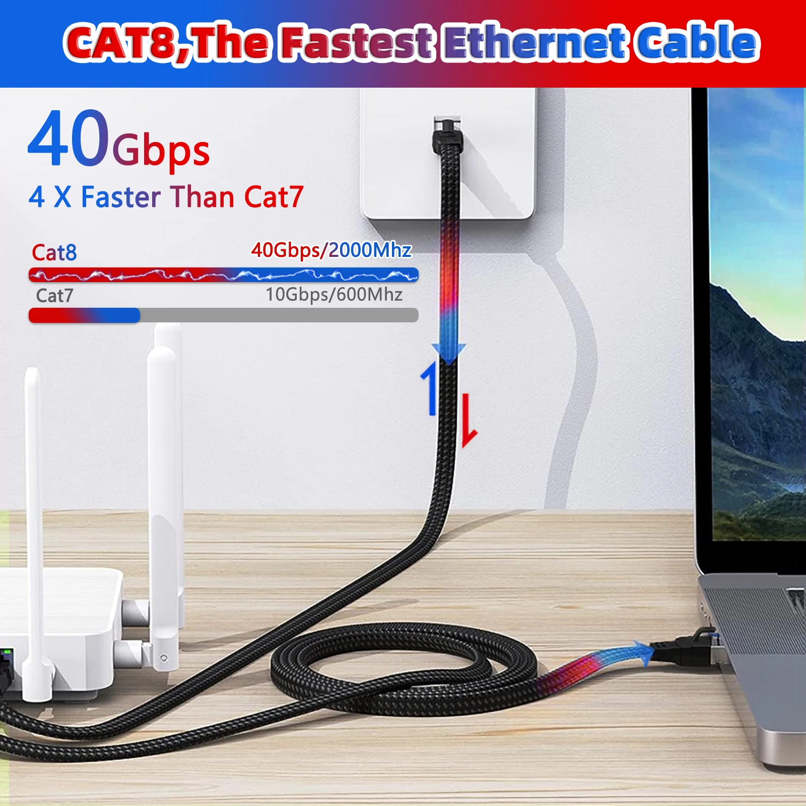 Comprar Cable Ethernet Cat 8 trenzado de alta velocidad 40Gbps 2000Mhz Cable de red Cat8 RJ45 blindado Cables LAN de alta resistencia para interiores compatibles