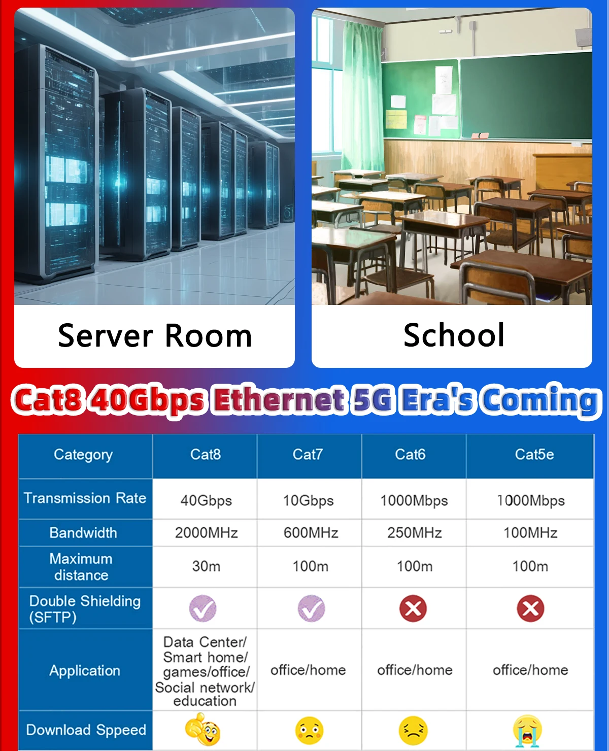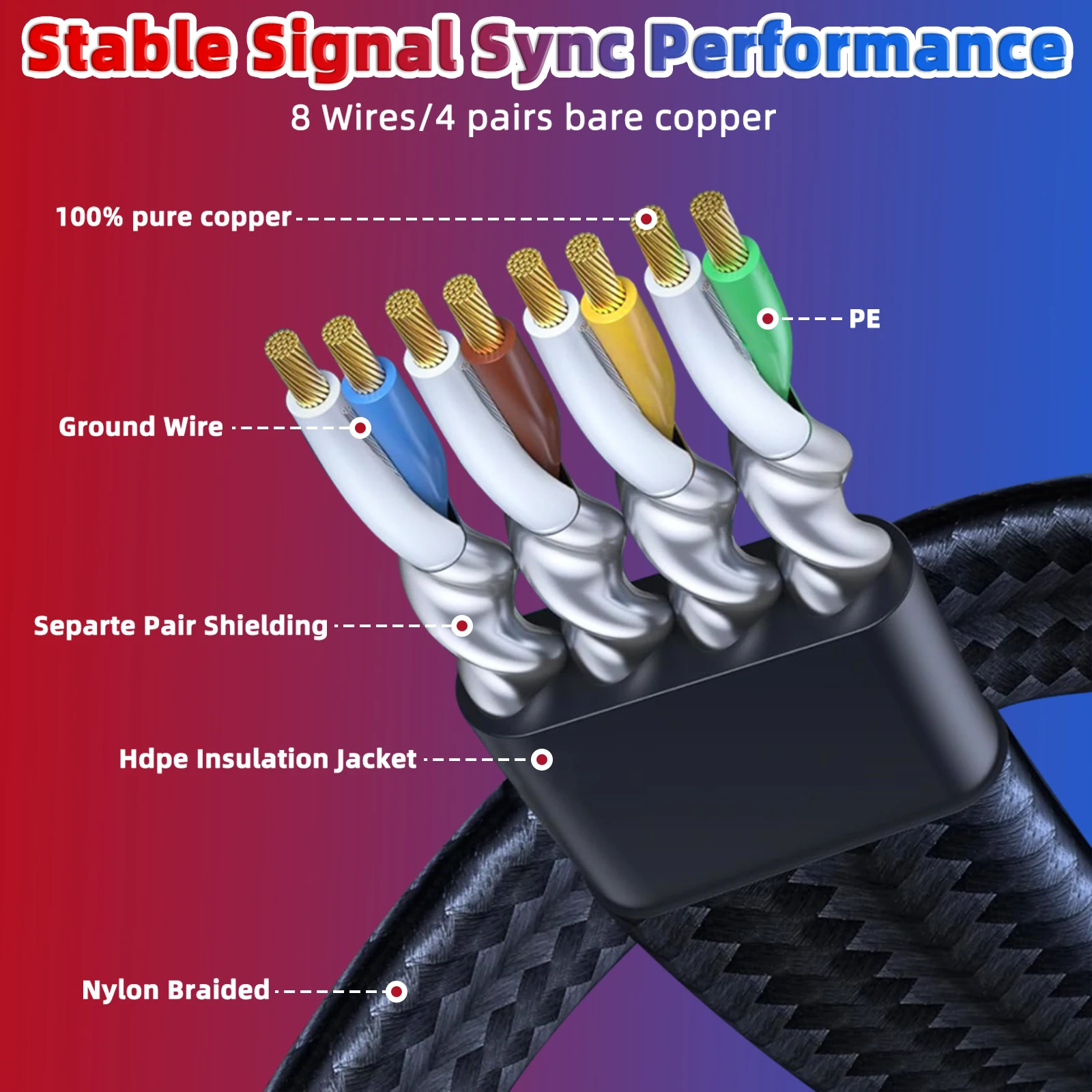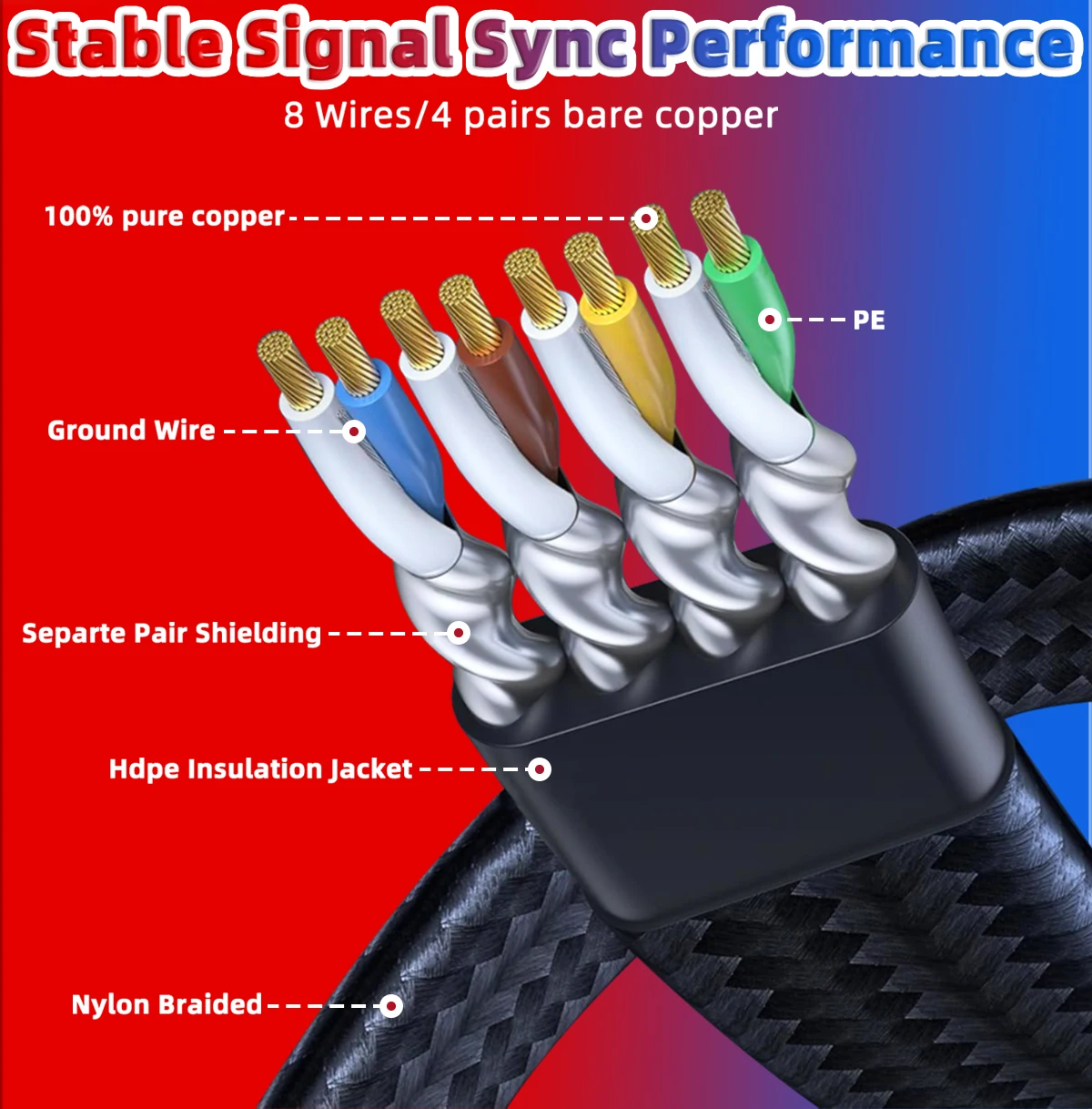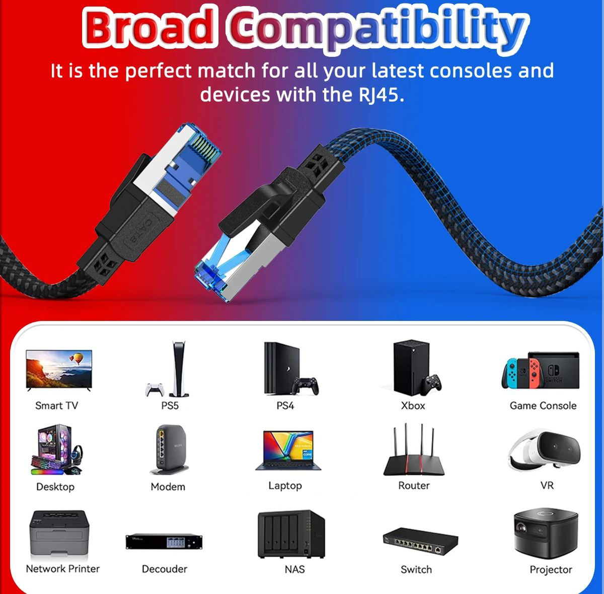 🔁 Compatible con versiones anteriores– Totalmente compatible con redes Cat7/Cat6e/Cat6/Cat5e/Cat5.