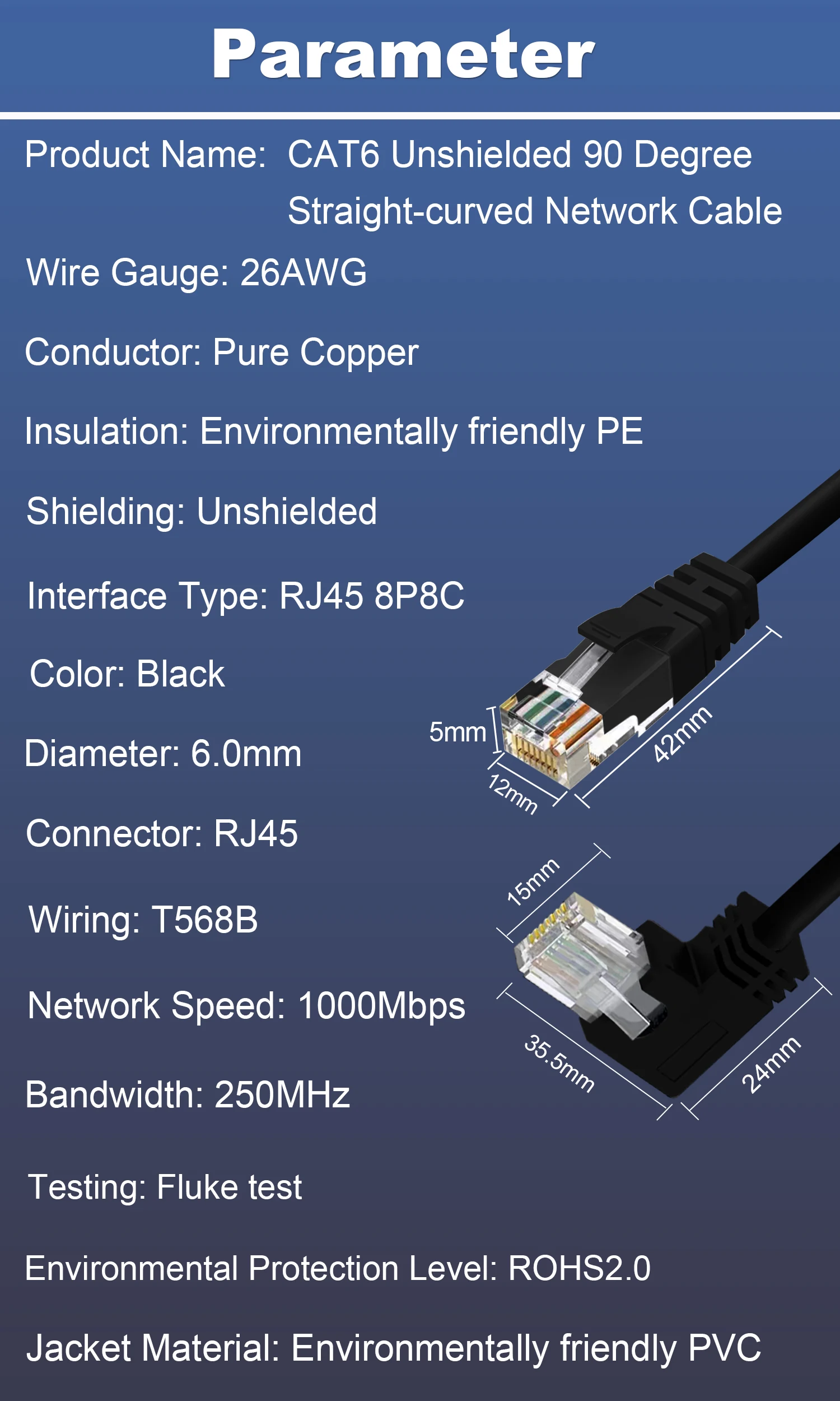 Nombre del producto CAT6 sin blindaje de 90 grados a cable de red recto