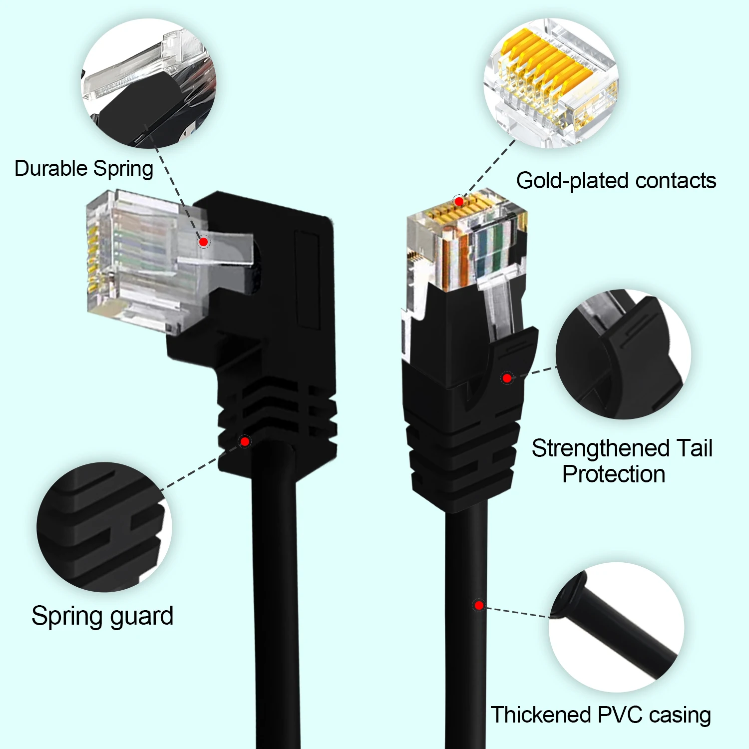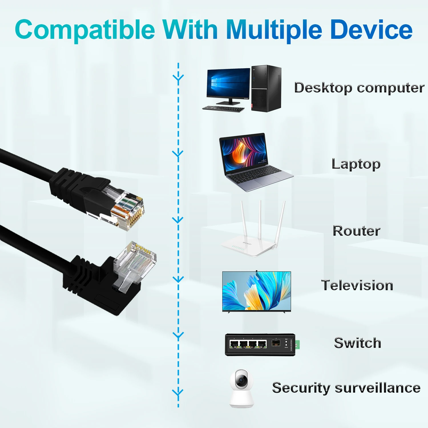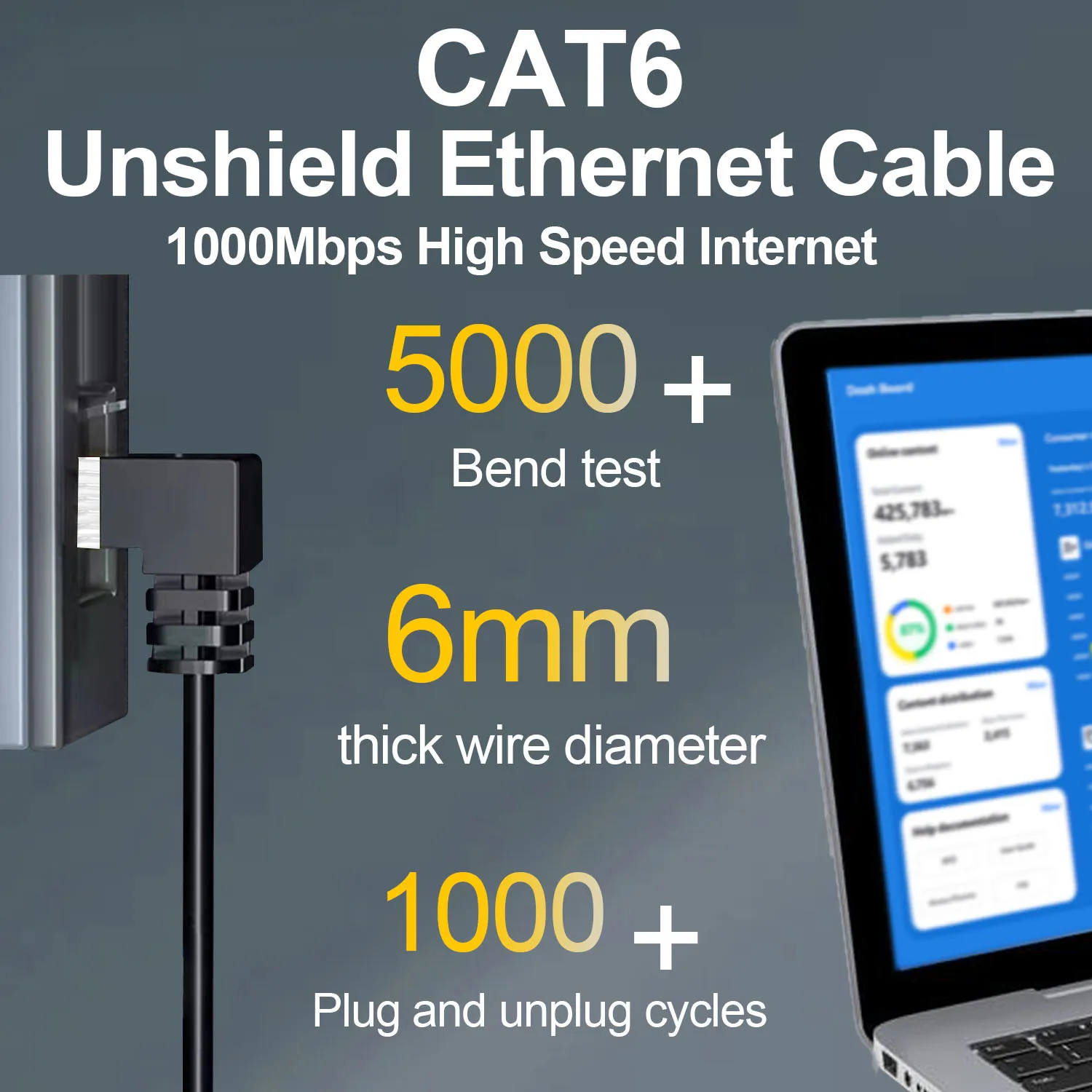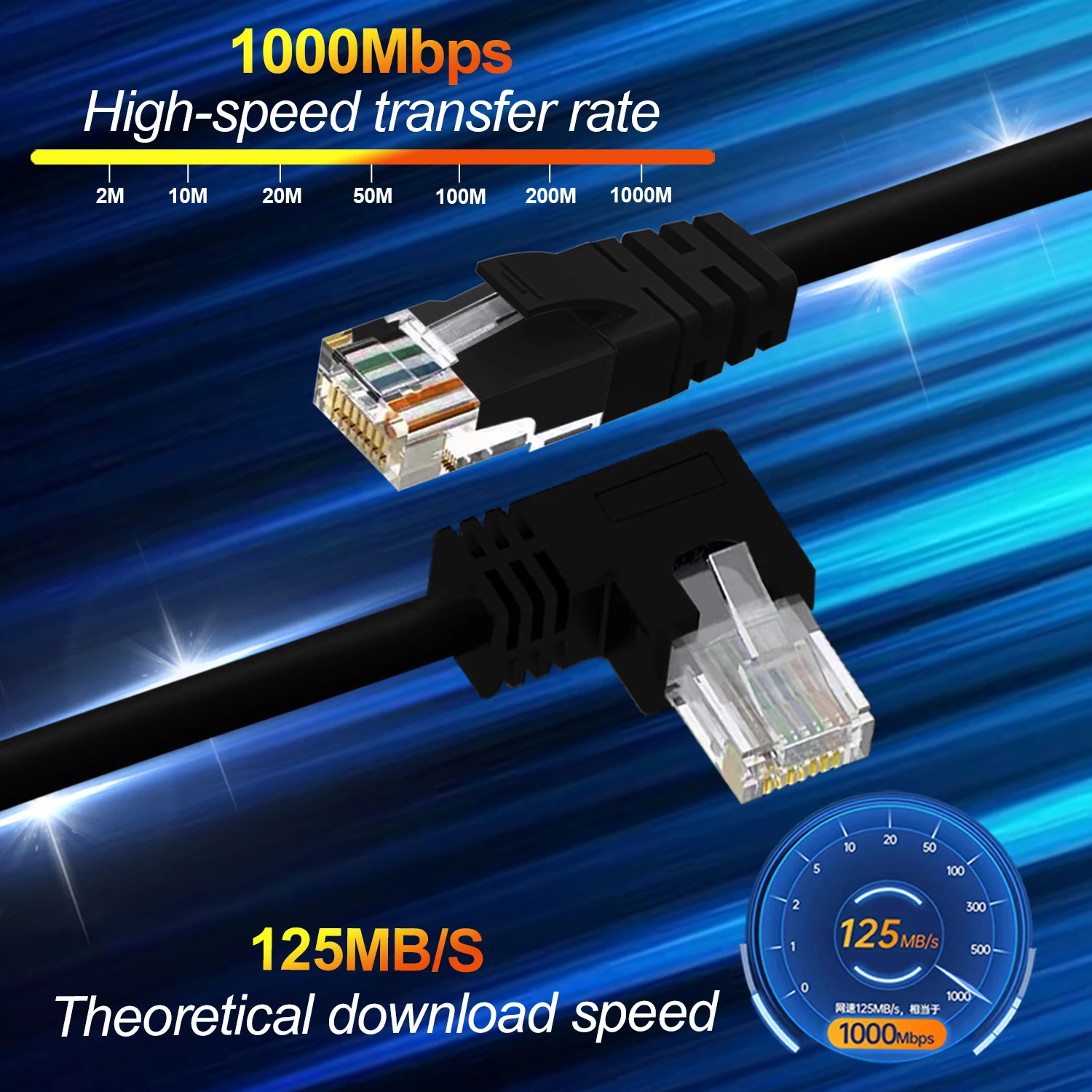 Comprar Cable Ethernet Cat6 de 90 grados a recto, sin blindaje, 1000Mbps, 250MHz, Cable de red RJ45, Cable de Internet 26AWG, cobre puro, UTP