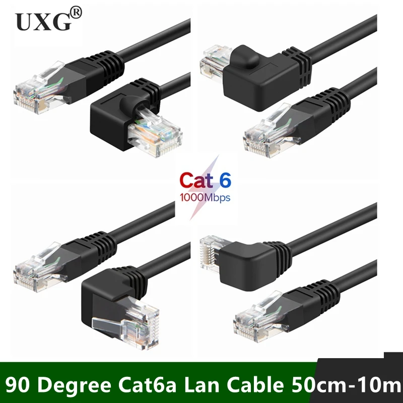 Comprar Cable Ethernet Cat6 de ángulo recto de 90 grados, parche de red STP, Lan, RJ45, Cat 6, negro, 1M, 2M, 3M, 5m, 10m