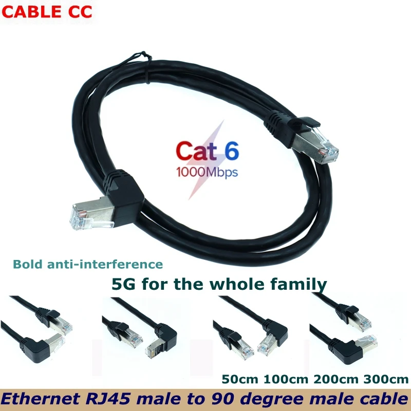 Comprar Cable Ethernet Cat6 RJ45, Cable de red UTP de ángulo recto de 90 grados, puente grueso antiinterferencias, Lan, Gigabit para red 5G