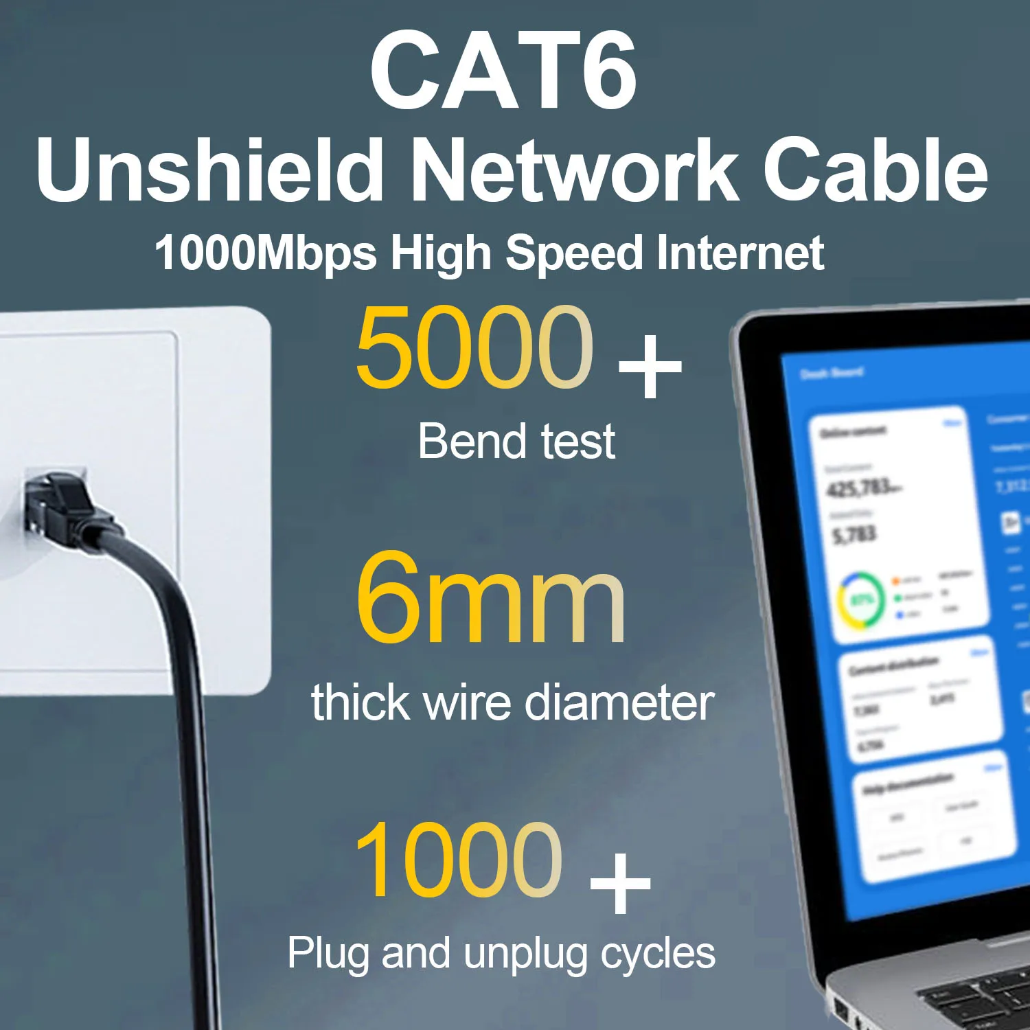 Comprar Cable Ethernet Cat6 sin blindaje, 1000Mbps, 250MHz, Cable de red RJ45, 26AWG, Cable de Internet Cat 6, cobre puro, UTP para ordenador