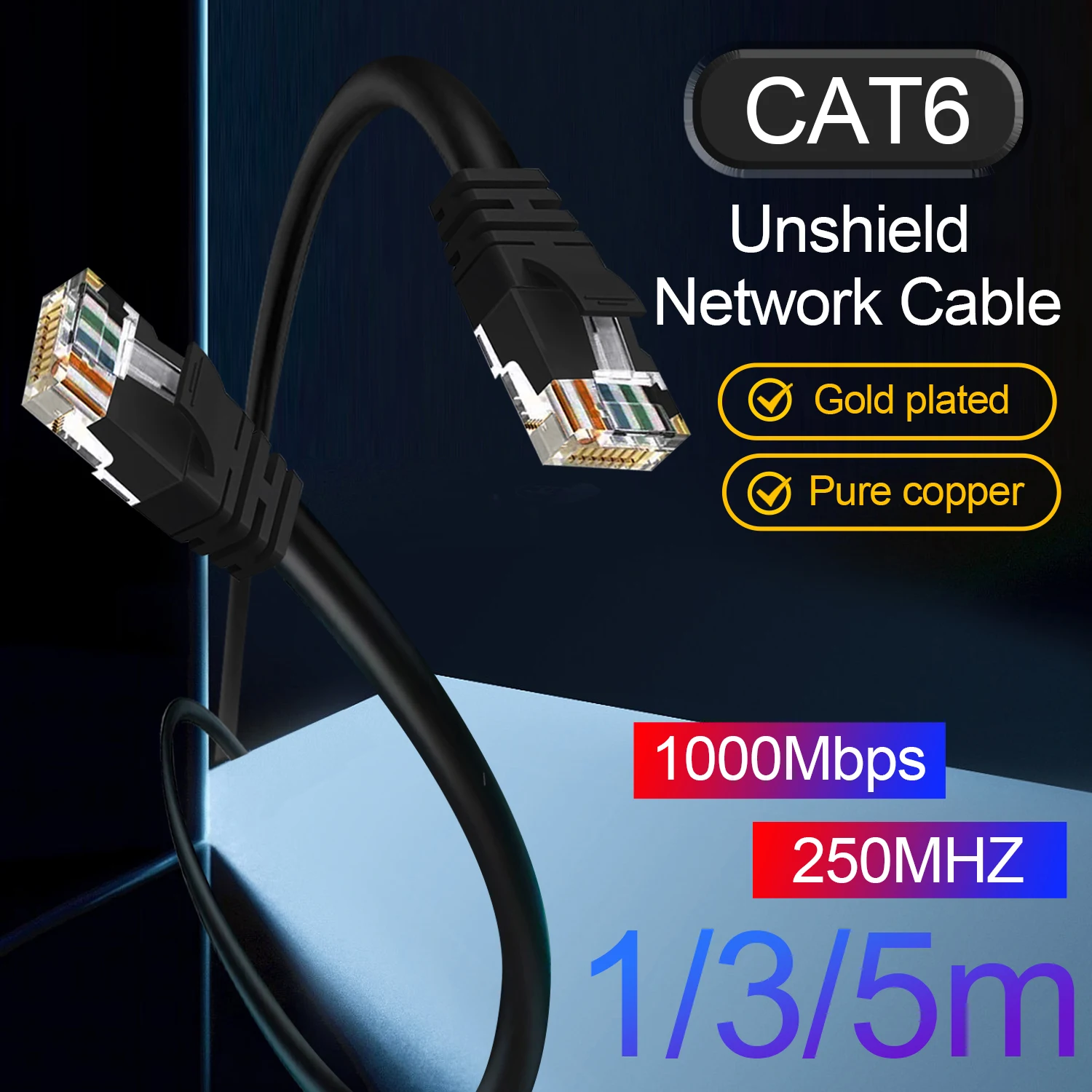 Comprar Cable Ethernet Cat6 sin blindaje, 1000Mbps, 250MHz, Cable de red RJ45, 26AWG, Cable de Internet Cat 6, cobre puro, UTP para ordenador