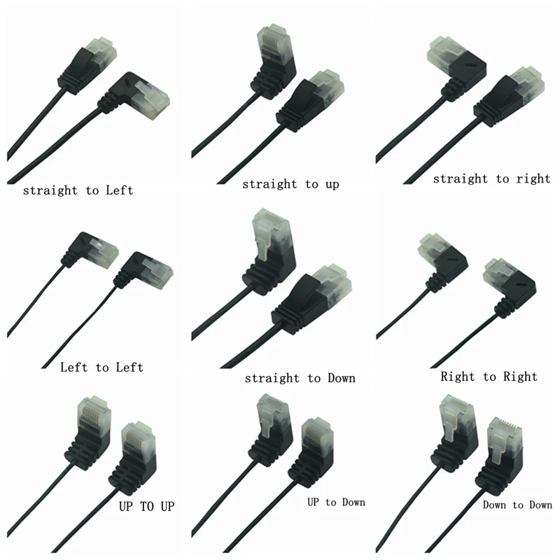 Comprar Cable Ethernet Cat6 superfino y ultradelgado, accesorio RJ45, arriba/abajo/izquierda/derecha, ángulo de 90 grados, UTP, red, Cat6a, Lan, corto, 1m