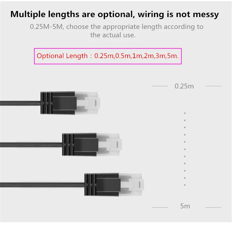 Diseño ultra delgado y anguladoEl diseño ultradelgado y en ángulo hace que el cable sea muy cómodo de usar, muy fácil de encajar en los espacios más estrechos. Peso ligero y fácil de envolver. Se enrolla muy bien y es compacto cuando viaja.Velocidad de transmisión de alta velocidadAncho de banda de hasta 500MHz y transmisión de datos a velocidades de hasta 10Gbps, utilice su Internet a velocidades superiores, sin el desorden del cableado voluminoso.EspecificaciónTipo de cable: CAT6a 4 pares UTP;Composición: 32AWG(7/0.08BC + Tetoron)* 4P + chaqueta de PVC;Calibrador conductor: 32 AWG;OD: 2,8 +/-0,15 MM;Tipo de conector: RJ45;Ancho de banda: hasta 500MHZ;Velocidad: hasta 10Gbps;Conectores y pines de contacto: chapado en oro de 50 micras;CompatibilidadCompatible con todas las aplicaciones CAT5 CAT5e CAT6 CAT6a Cat7.Compatible con 10BASE-T, 100BASE-TX, 1000BASE-T y 10GBASE-T.Adaptadores de red, escritorio, portátil, enrutador, módem, interruptor, concentrador, DSL, X-Box, PS2, PS3,PS4, panel de conexión y otras aplicaciones de red de alto rendimiento.PaqueteCat6a Cable Ethernet ultra delgado para Internet X1.