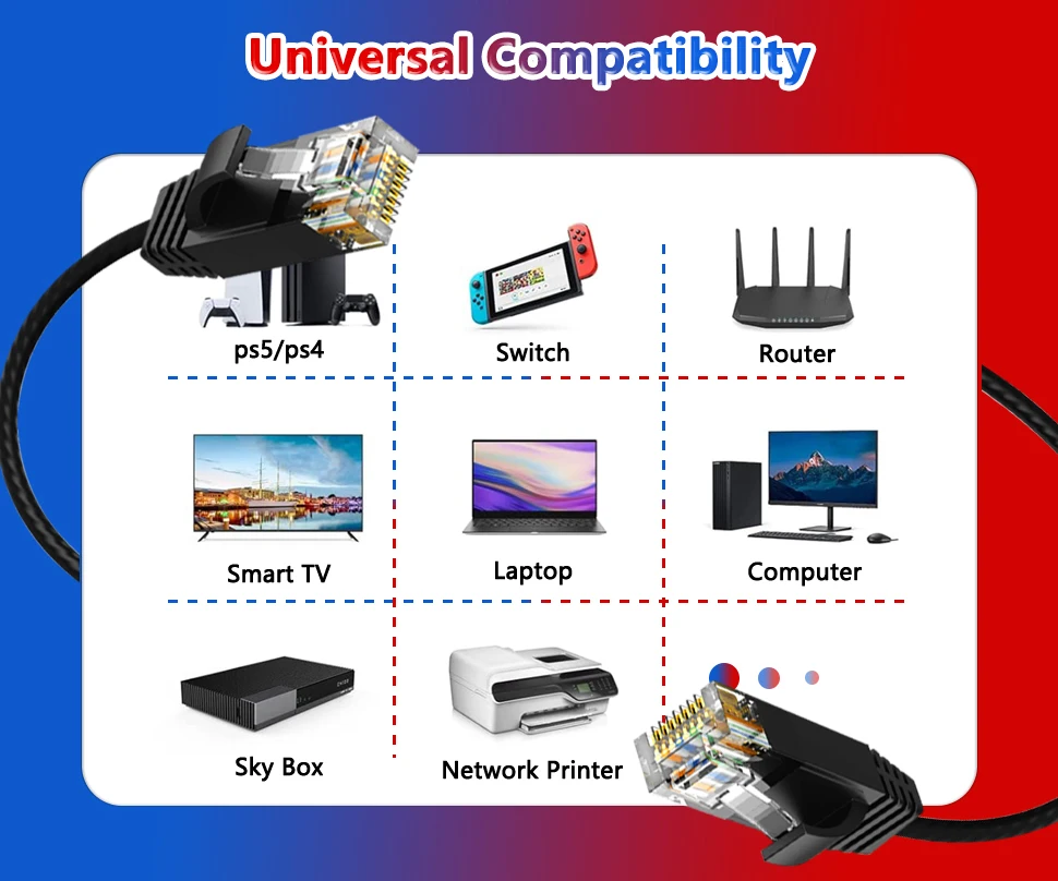 El Cable de conexión cat6a Delgado es más fácil de enrutar y Ahorra espacio valioso en entornos de alta densidad, como centros de datos y salas de telecomunicaciones. Con el cable Ethernet Delgado, puede colocar más cables en el mismo espacio, ahorrándole el tiempo y el costo de expandir o reemplazar las rutas de cable.