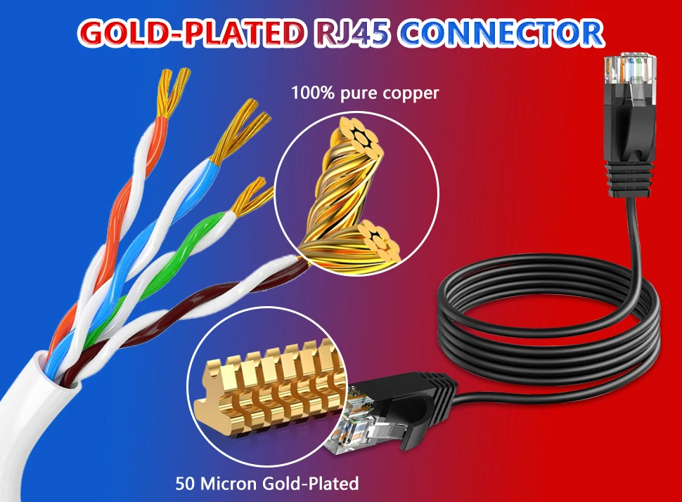 Todos los cables de conexión 8P8C de cobre puro CAT 6a de 30AWG están chapados en oro para admitir una mejor conexión de red hasta 10G de velocidad 550MHZ red Ethernet.