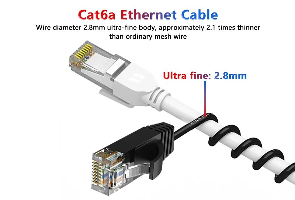 Los cables de conexión CAT6A tienen aproximadamente la mitad del diámetro de un cable de conexión típico. Significa que tres de ellos estarán en el mismo espacio de un cable de conexión estándar. Es mucho más fácil enrutar múltiples conexiones en un espacio más pequeño con el cable delgado CAT6.