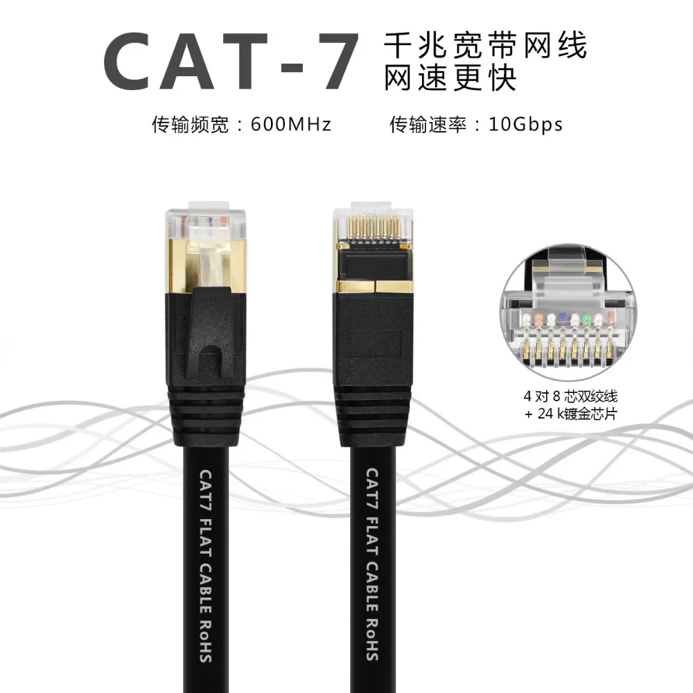 Comprar Cable Ethernet Cat7 de 50M - 1m, Cable Lan plano, Cable de red RJ45 redondo SFTP, cable de internet CAT7 para enrutador, módem, PC, Cable de conexión PS4