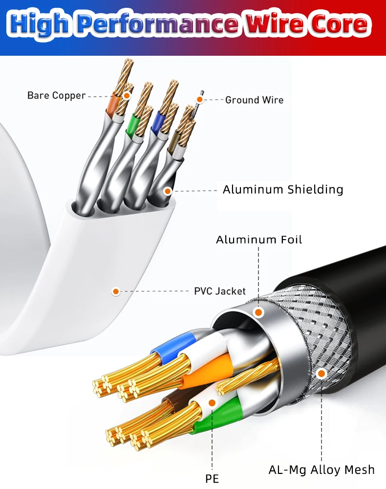 4 veces más rápido que Cat7: El cable Ethernet HENGSUR CAT8 ofrece velocidades de red 4 veces más rápidas que Cat7, lo que garantiza un rendimiento perfecto para todos sus dispositivos RJ45.