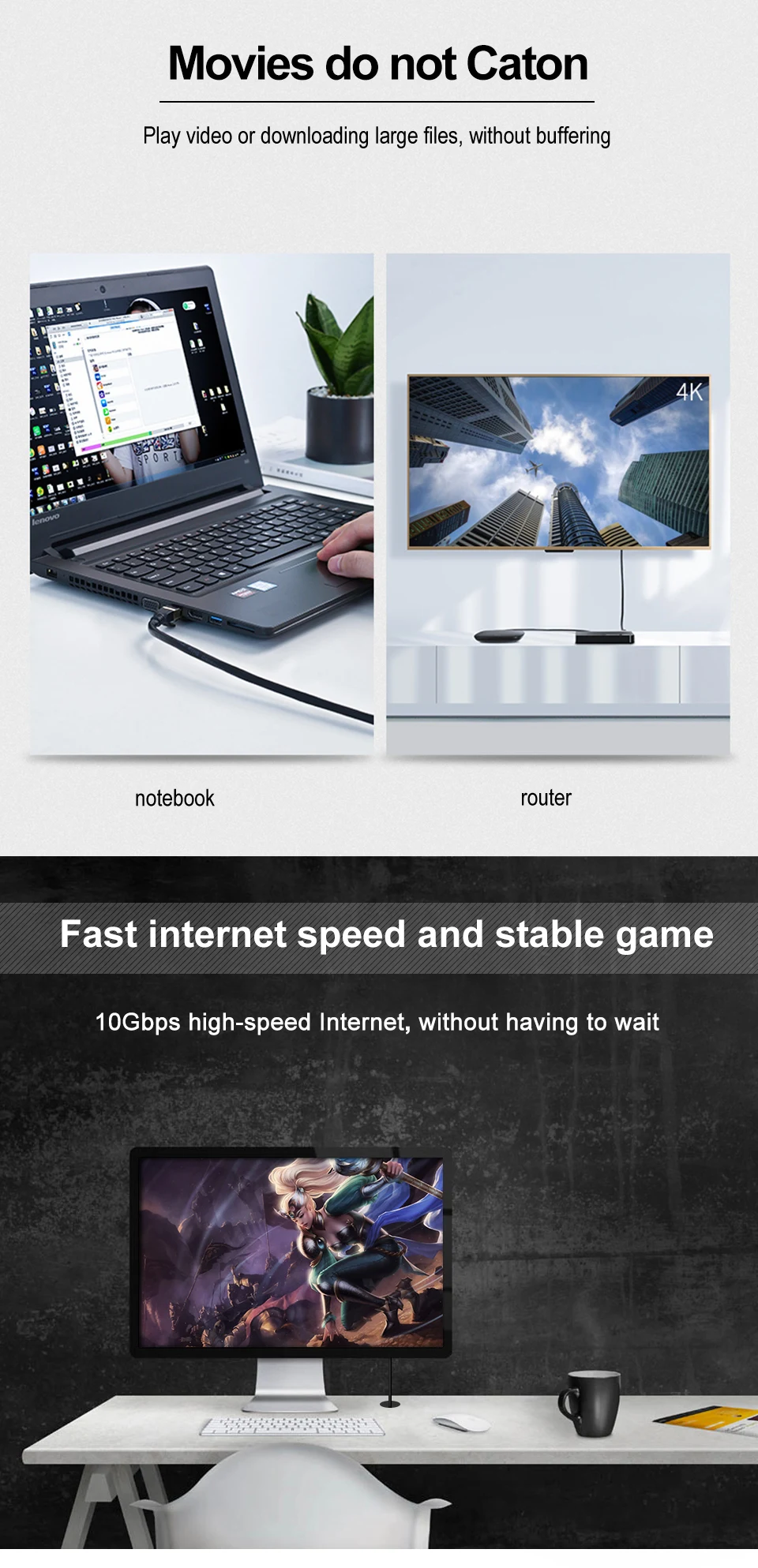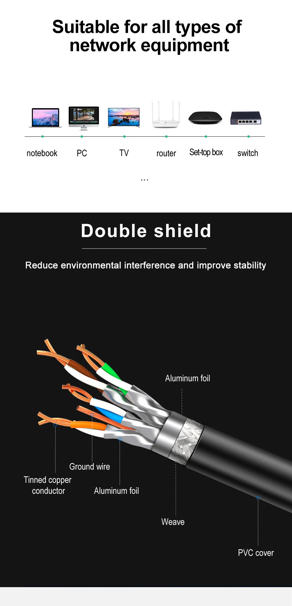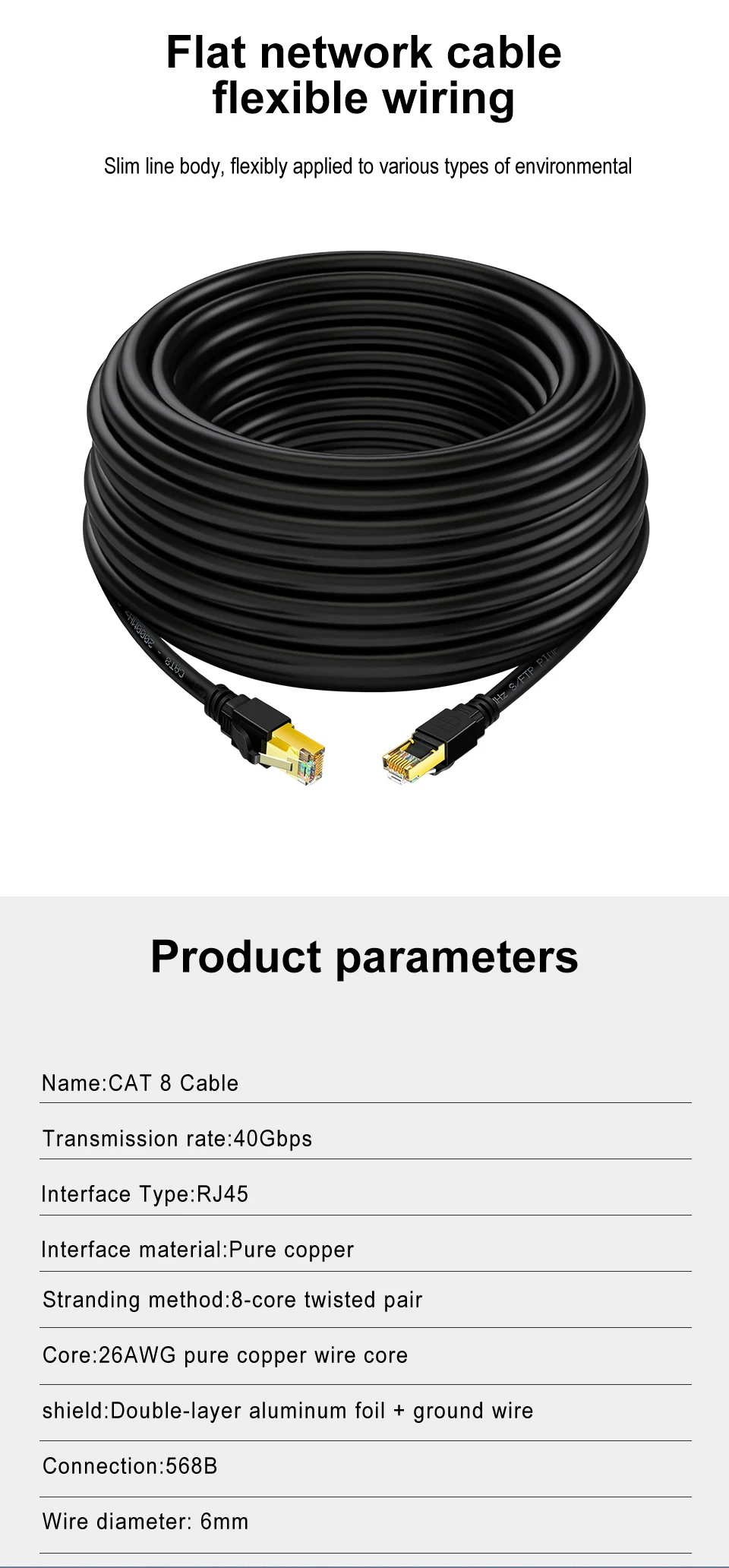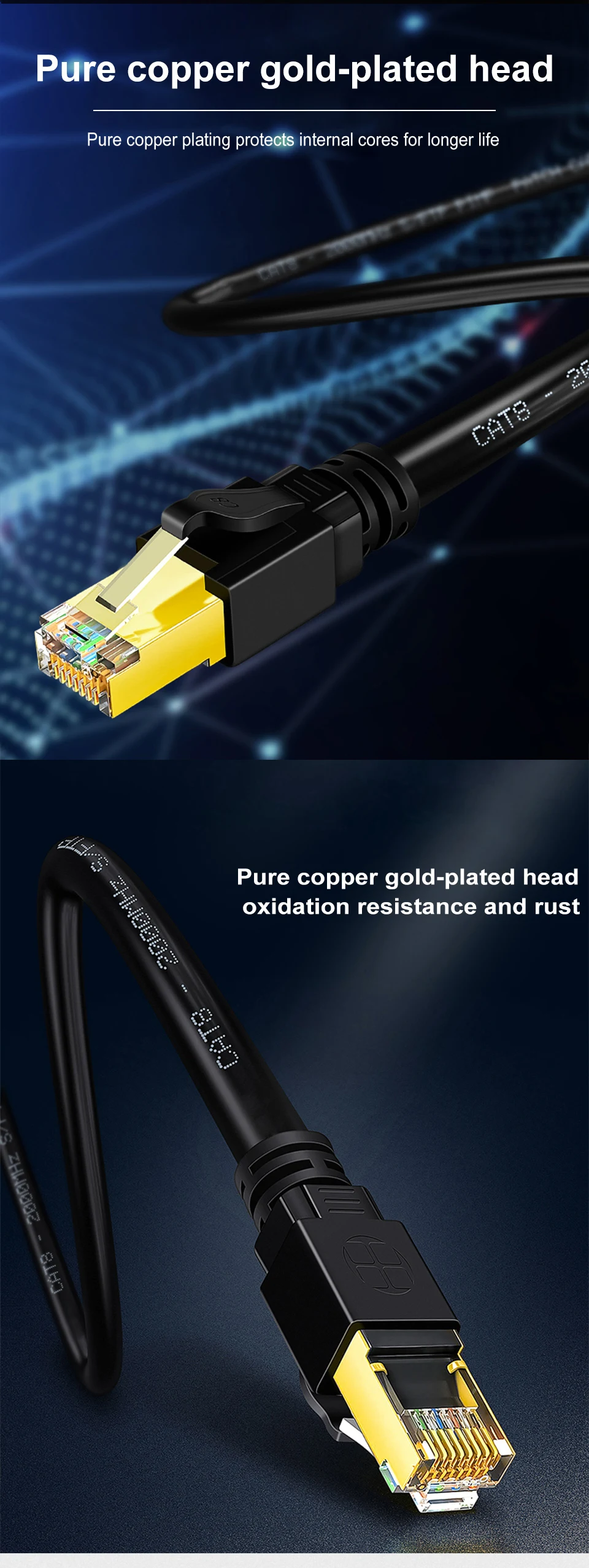Comprar Cable Ethernet CAT8 de 40Gbps y 2000MHz, Cable Lan de Internet trenzado de algodón para ordenadores portátiles, enrutador PS 4, RJ45