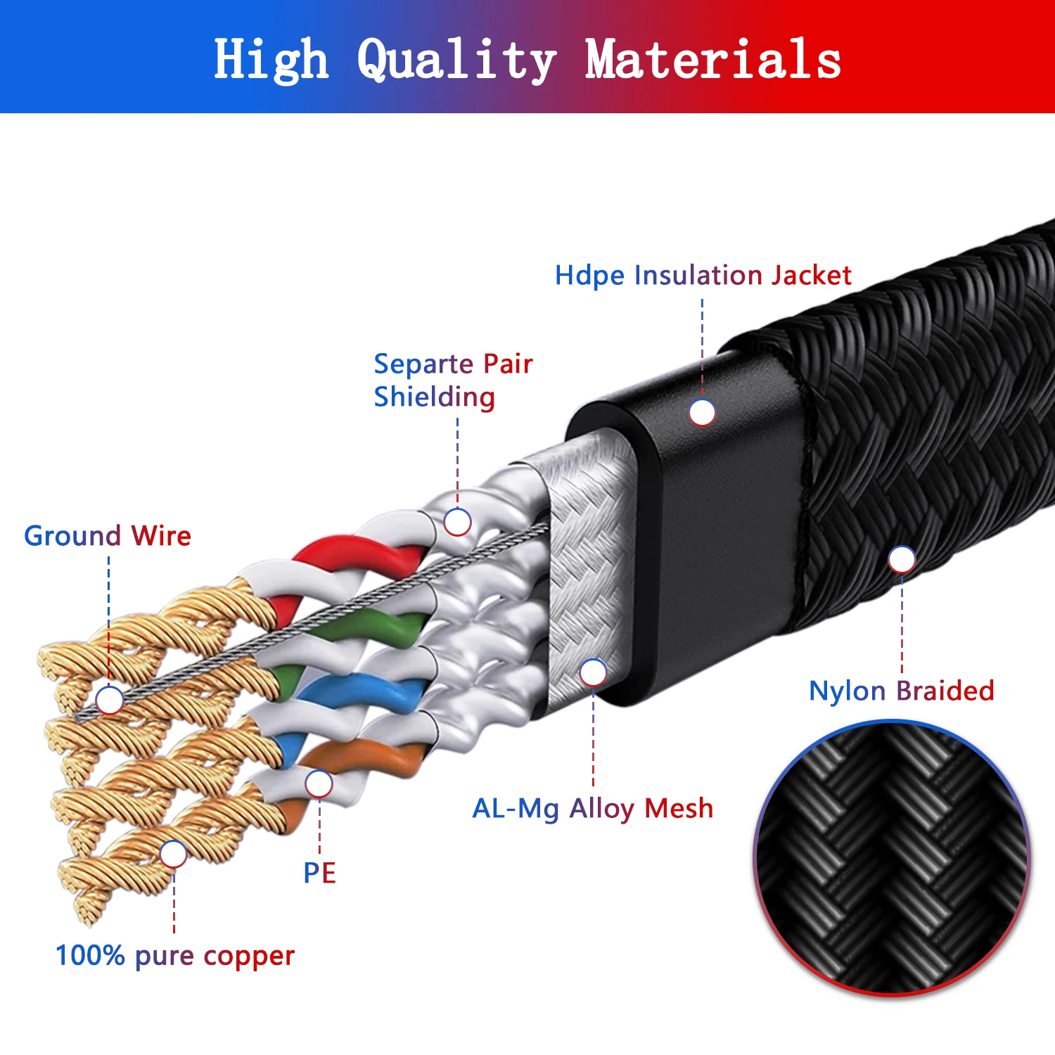 Mejore su experiencia de red con el cable Ethernet trenzado de nailon Hengsur CAT8.Con un ancho de banda de hasta 2000 MHz y una velocidad de transferencia de datos de 40 Gbps, este cable garantiza conexiones estables y de alta velocidad tanto para el trabajo diario como para sesiones de juego intensas.