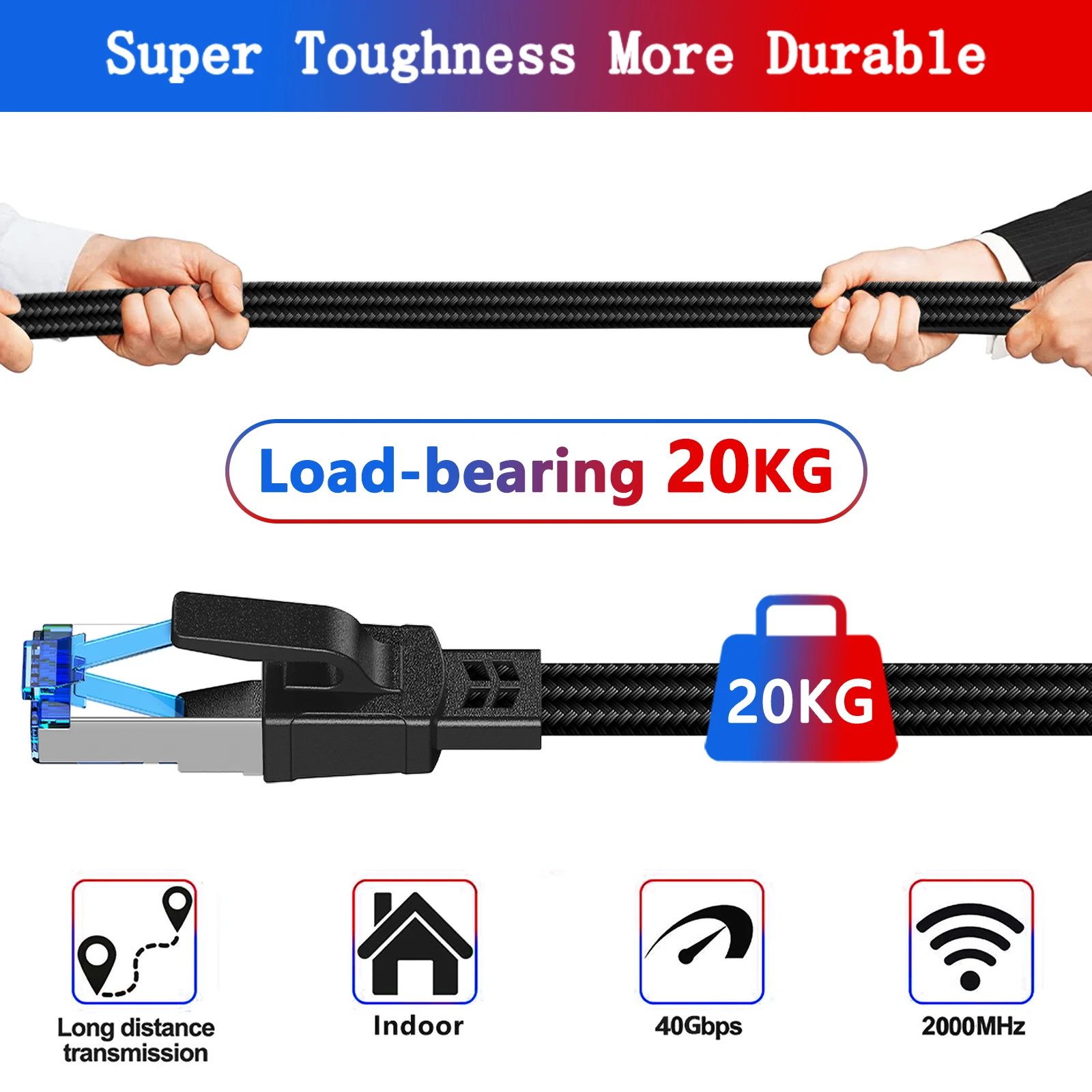 Comprar Cable Ethernet Cat8 de alta velocidad 40Gbps 2000MHz Cable Lan de red de Internet para módem enrutador PS 5/4 RJ45 Cable plano Ethernet Cat 8