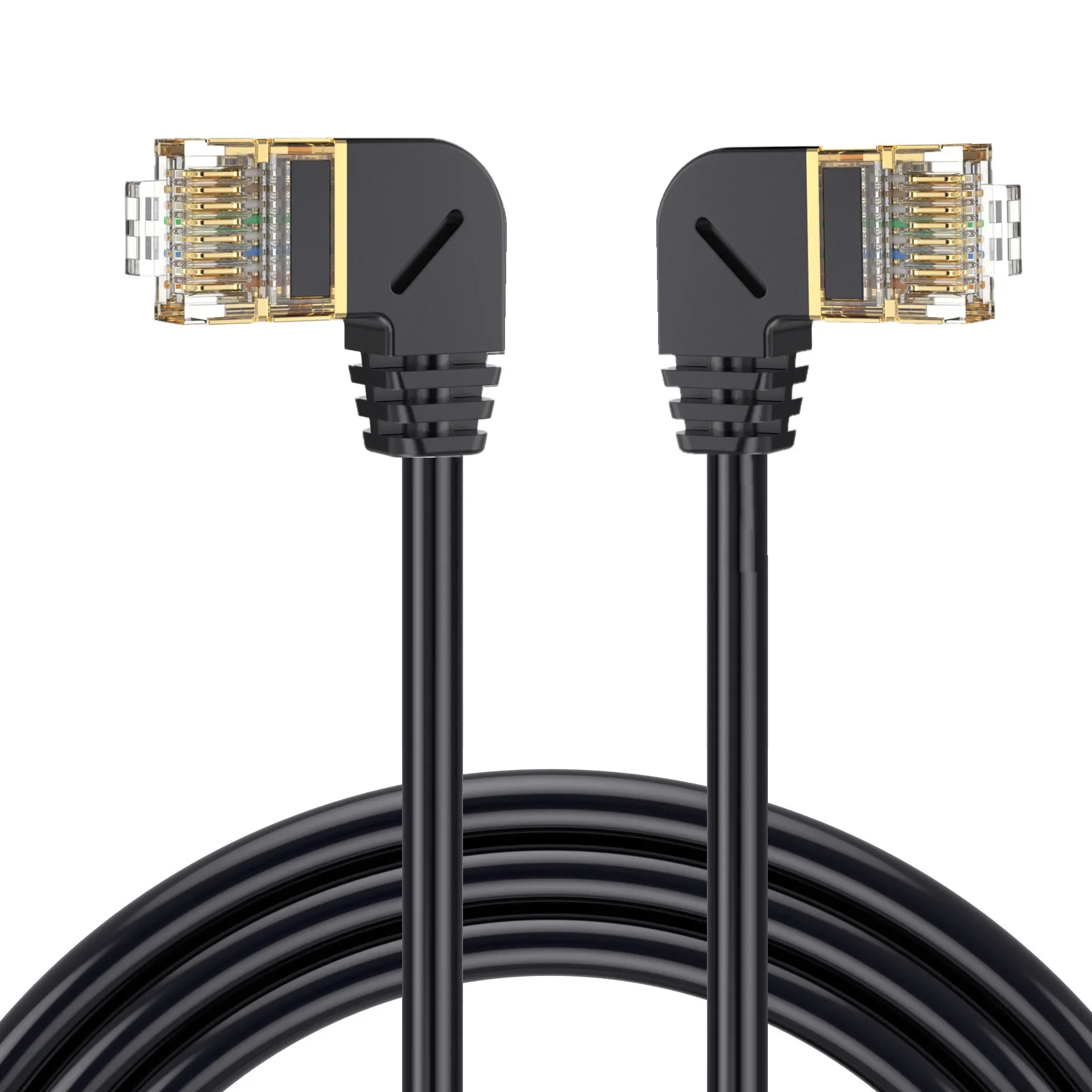 Comprar Cable Ethernet Cat8 SFTP 40Gbps 2000MHz Cat 8 RJ45 red Lan 90 grados arriba abajo izquierda ángulo recto Internet RJ45 Cable superfino