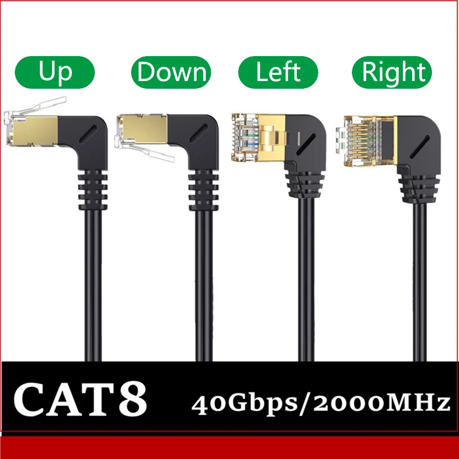 Comprar Cable Ethernet Cat8 SFTP 40Gbps 2000MHz Cat 8 RJ45 red Lan 90 grados arriba abajo izquierda ángulo recto Internet RJ45 Cable superfino