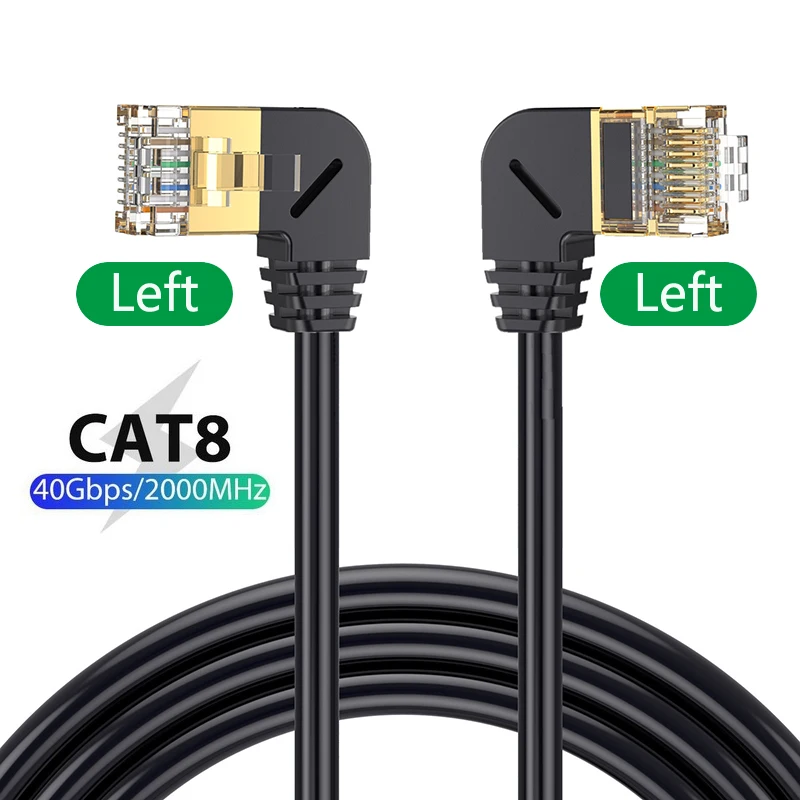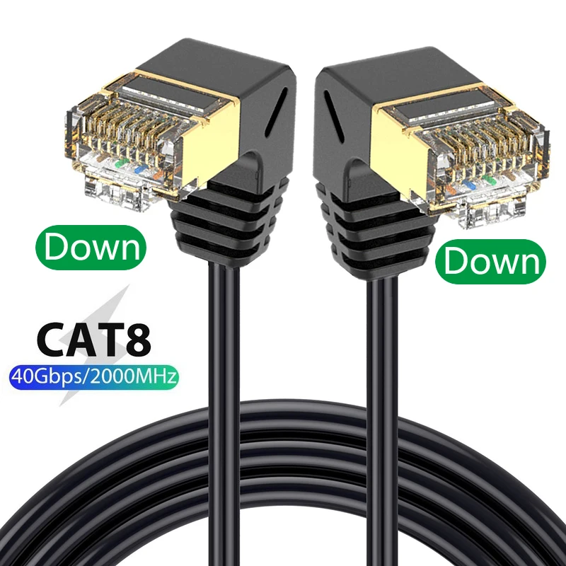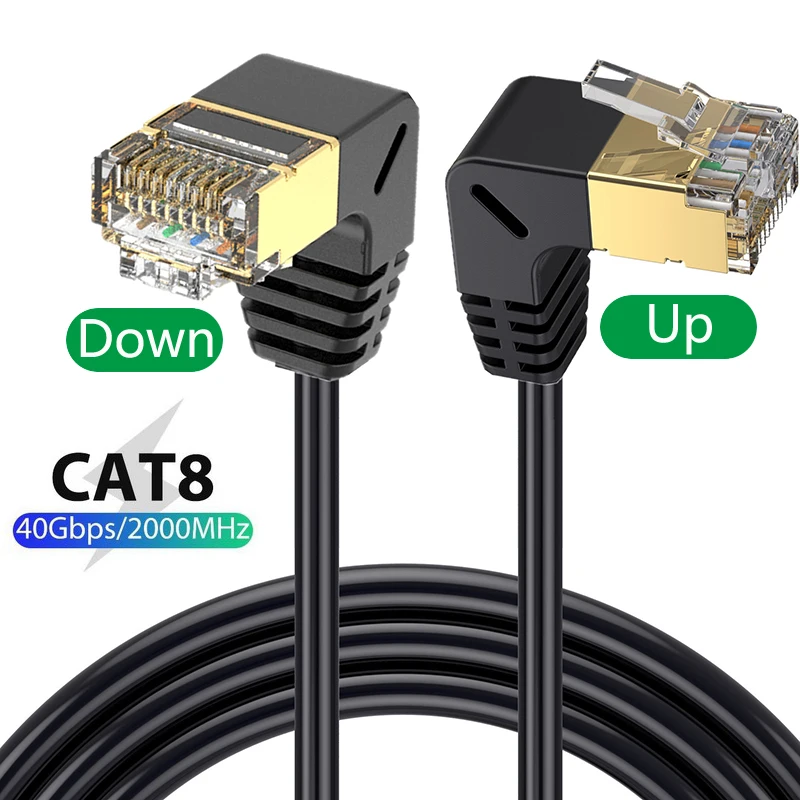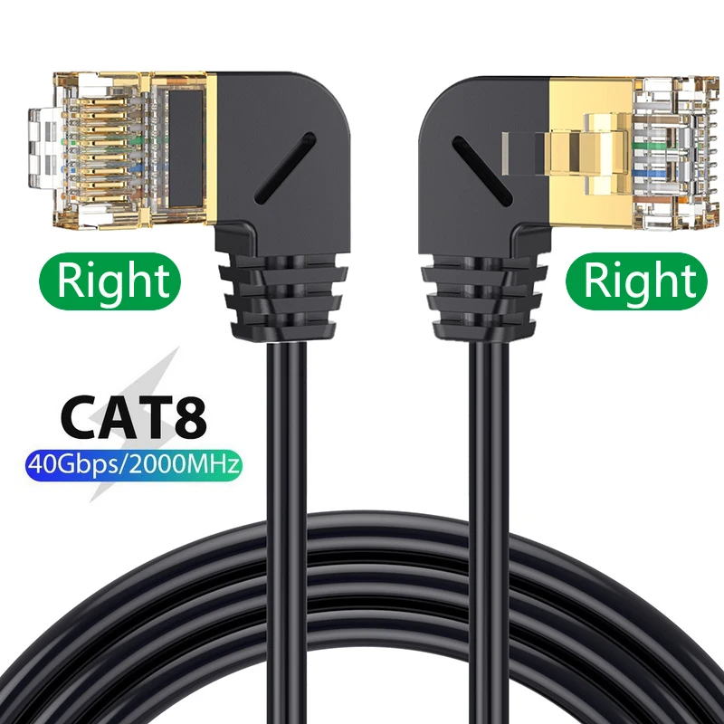 Comprar Cable Ethernet Cat8 SFTP, Cable superfino de Internet RJ45, 40Gbps, 2000MHz, Cat 8, red Lan, 90 grados, arriba y abajo, ángulo izquierdo y derecho