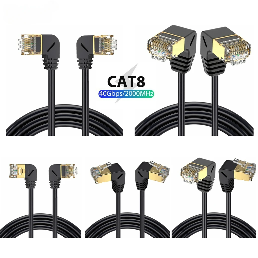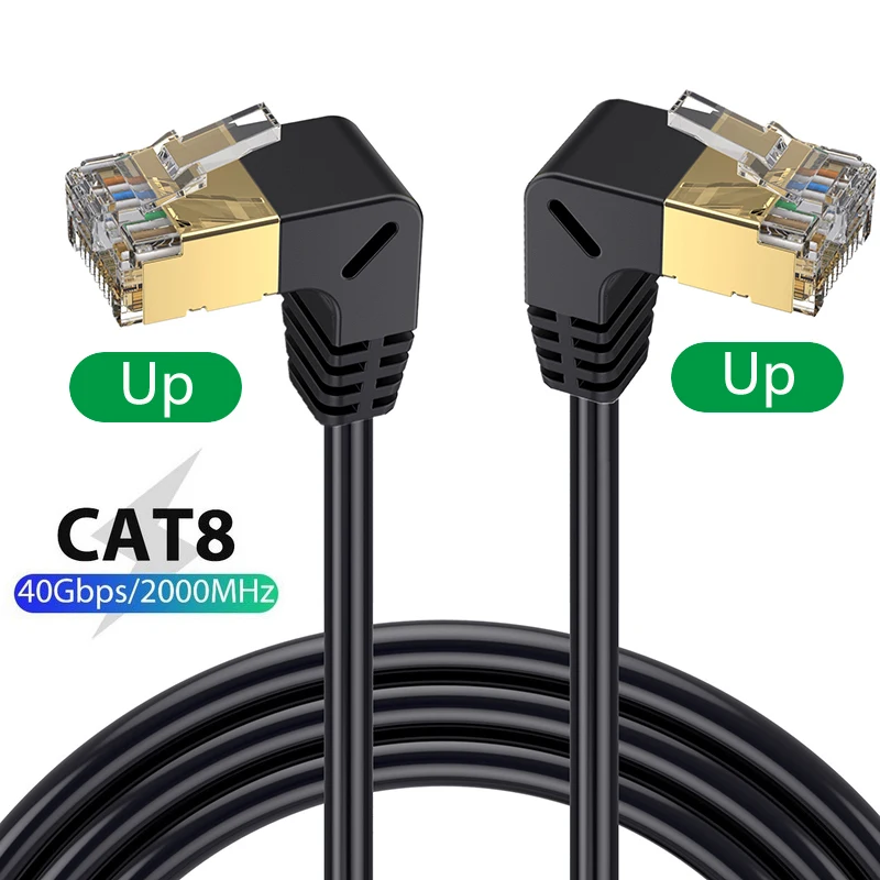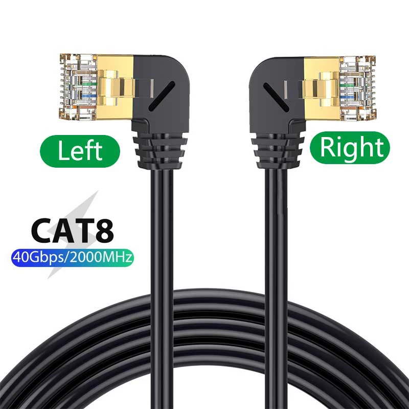 Comprar Cable Ethernet Cat8 SFTP, Cable superfino de Internet RJ45, 40Gbps, 2000MHz, Cat 8, red Lan, 90 grados, arriba y abajo, ángulo izquierdo y derecho