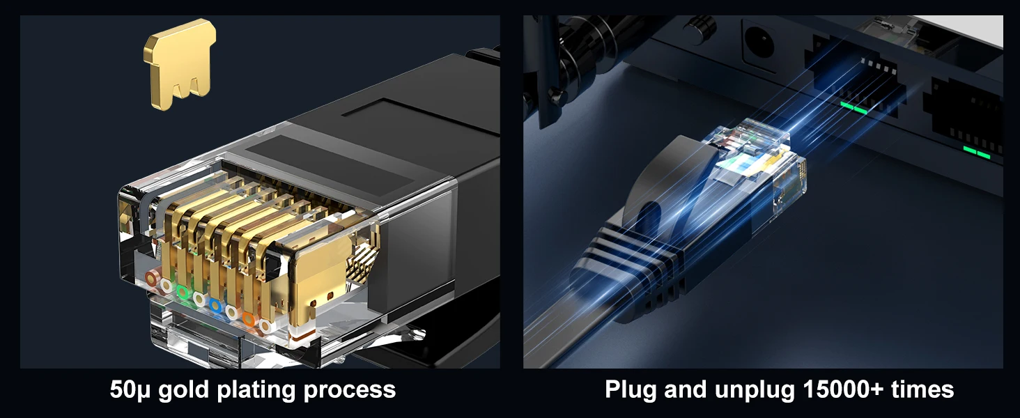 El cable de red Cat6 es compatible con versiones anteriores de cables Ethernet Cat 5e y Cat 5.Los conectores RJ45 proporcionan conectividad universal para componentes de red Lan como computadoras, portátiles y más