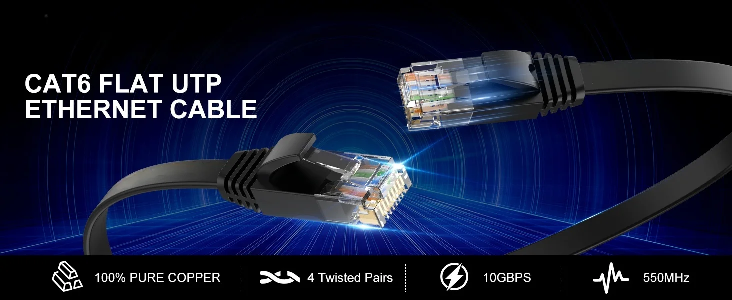 El cable Cat6 ofrece redes gigabit de alta velocidad de hasta 1000 Mbps y proporciona un rendimiento de hasta 250 MHz y es adecuado para 10BASE-T, 100BASE-TX (Fast Ethernet) y 1000BASE-T/1000BASE-TX (Gigabit Ethernet) )