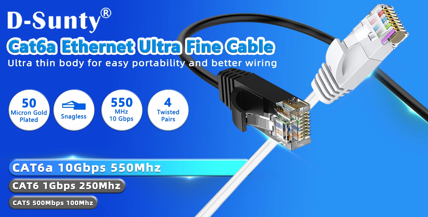 Comprar Cable Ethernet D-Sunty Cat6A, Cable Lan de 10Gbps, Cable de conexión de red de Internet delgado UTP RJ45 para módem, Cable enrutador Ethernet Cat 6A