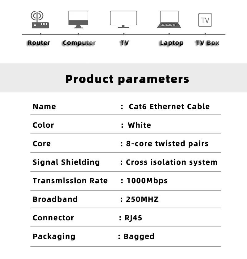 Cable Ethernet de Internet ultradelgado Cat6 x1.