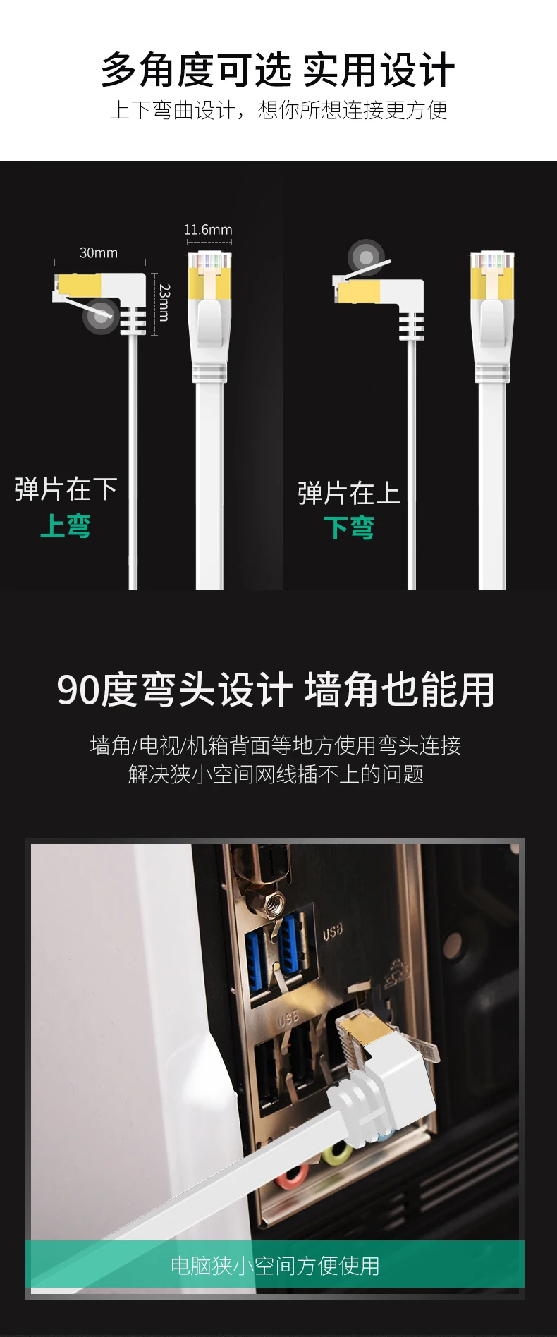 Comprar Cable Ethernet de flexión hacia arriba y abajo blanco de 8m y 5m, Cable Lan Cat6, Cable de red UTP CAT6 RJ 45, Cable de conexión para enrutador de ordenador portátil, red RJ45