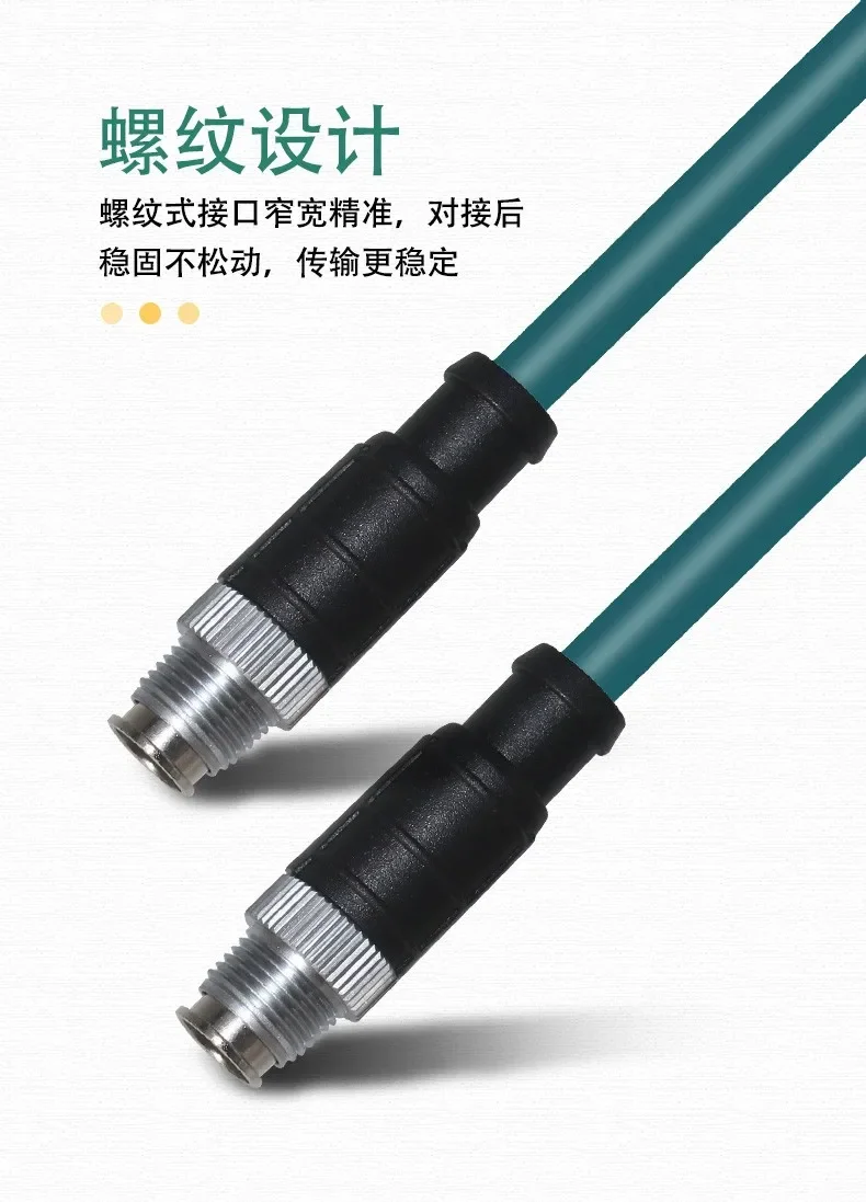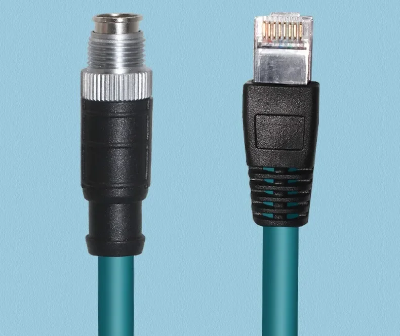 Cable Ethernet M12 de 8 pines tipo X a RJ45, codo de ángulo recto, 4 pines, código A, codificación D, cabeza macho hembra a conector RJ45, Cable de cadena de arrastre