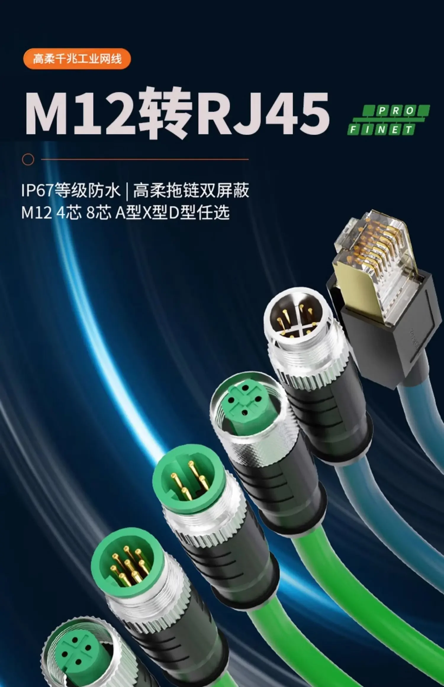 Codo de Cable Ethernet M12 a RJ45, ángulo recto, 4 pines, 8 pines, código A, codificación D, tipo X, cabeza macho hembra a conector RJ45, cable de cadena de arrastre