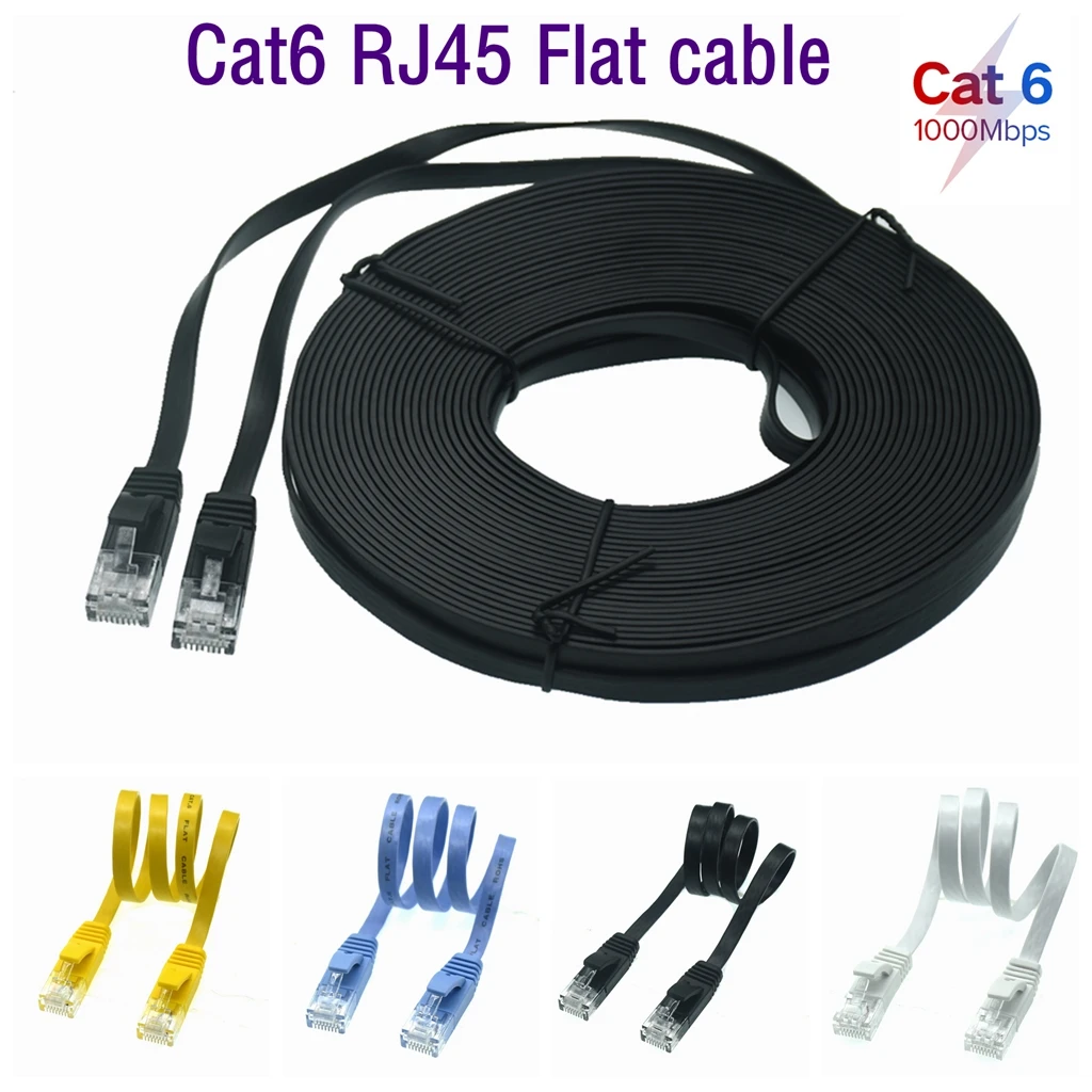 Comprar Cable Ethernet plano CAT6 RJ45, cable de Red CAT 6 de 0,2 m, 0,5 m, 1m, 3m, 5m-30m, 32AWG para enrutador de ordenador portátil, sala de máquinas